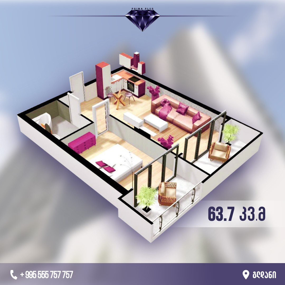 იყიდება 2 ოთახიანი ბინა გლდანი ბოჭორიშვილის ქ.