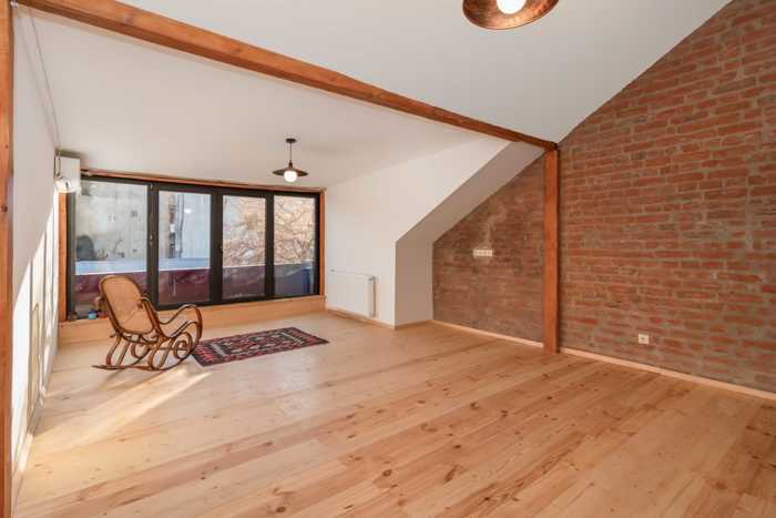 თავისუფლების მოედნიდან, ფეხით 5 წუთის სავალ მანძილზე, იყიდება ლოფტის ტიპის ბინა ჯამური ფართობით 85 კვ.მ. ბინა მოიცავს დიდ მისაღებ ოთახს, 1 საძინებელს, სველ წერტილს და ფრანგულ აივანს, ხის იატაკით, ცენტრალური გათბობით, საგარდერობო სივრცით. ბინა არის ახალი რემონტით, ახალი ავეჯით და ტექნიკით. იდეალურია საინვესტიციოდ.