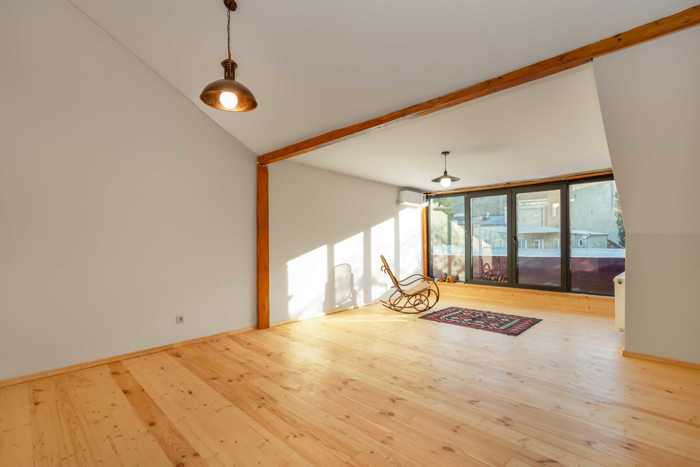 თვით ბინა არის 90 კვადრატული მეტრი. მის ზემოდ არის 100 კვადრატული სხვენი, გაფორმებული კერძო საკუთრებად რეესტრში. აგრეთვე უზარმაზარი კარადებია აივანზე კიდე 10-15კვ.მ. სათავსოები. და ბოლოს კიდე სარდაფია 5 კვ.მ. გაფორმებული პირველ სართულზე. სხვენი გასარემონტებელია. თუ გარე იერსახეს არ ცვლით, შიგნიდან ნებართვა არ ესაჭიროება. ავეჯის მხოლოდ ნაწილი დარჩება, დანარჩენი გაიზიდება. თბილი, ნათელი ბინა, თანამედროვე რემონტით, ძველი ქალაქის გულში, ჩვენი დედაქალაქის ერთ ერთ ისტორიულ უბანში. 4 მეტრიანი მაღალი ჭერით, კონდიციონერი თითო ოთახში. დიდი სათავსოები აივანზე, იტალიური ეზო, მარმარილო, კულტურული მემკვიდრეობის შენობაა და ქალაქის ისტორიული ძეგლი. თავისუფლების მოედნამდე 450 მეტრში. ბუნებრივი სითბო და მზის სხივები მთელი დღის განმავლობაში ორ ოთახში. იმ ოთახებში გათბობას პრაქტიკულად არ ვიყენებთ.