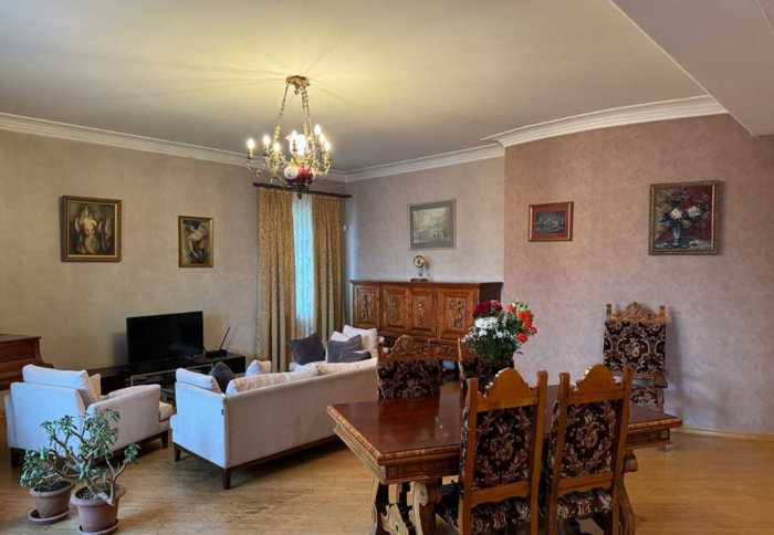 საერთო ფართი 259.16 მ² ოთახი 5 საძინებელი 3 სართული 4/7 იყიდება აგურით ნაშენი 7 სართულიანი სახლის მე-4 სართულზე ბინა, სახლი არის ერთ სადარბაზოიანი მდებარეობს საუკეთესო ადგილას კარგი საკუთარი ეზოთი დაცვით, საკუთარ ეზოშივე საპარკინგე ადგილით და ინდივიდუალური ავტოფარეხით გათვლილი 2 მანქანაზე 26.8 კვ.მ. სახლის აქვს ასევე ინდივიდუალური სარდაფი 21.5 კვ.მ. მისაღები 54.51 კვ.მ ლოჯი 26.03 კვ.მ 1.საძინებელი 23.25 კვ.მ 2.საძინებელი 18.74 კვ.მ 3.საძინებელი 24.58 კვ.მ საკუჭნაო 8.33 კვ.მ 1.აბაზანა 14.48 კვ.მ 2.აბაზანა 5.40 კვ.მ ჰოლი 26.62 კვ.მ სამზარეულო 24.28 კვ.მ ხედი ეზოზე ხედი ქუჩაზე ნათელი მყუდრო სველი წერტილი 2 მდგომარეობა გარემონტებული სტატუსი ძველი აშენებული პროექტი არასტანდარტული სამზარეულოს ფართი 24.28 მ² აივანი სარდაფი ლიფტი გარაჟი ცენტ. გათბობა ბუნებრივი აირი სათავსო