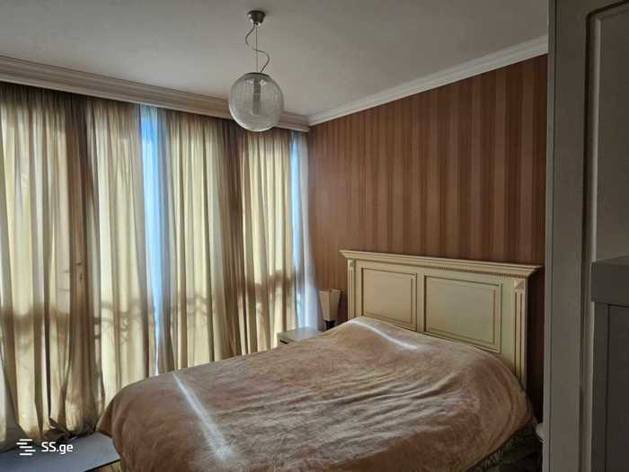 იყიდება ბინა ვაკის საცუარო აუზთან! კეთილმოწყობილი, მაღალი ხარისხის რემონტით, სრულად აღჭურვილი ტექნიკითა და ავეჯით. • 2 საძინებელი ( ერთი მასტერი) • 2 სველი წერტილი • 1 საგარდერობე ოთახი • იზოლირებული სამზარეულო (22 კვ.მ) + აივანი • ფართო მისაღები (53 კვ.მ) – შესაძლებელია მესამე საძინებლის გაკეთება, ხის იატაკი • ბინას ზედა სართულზე აქვს დაახლოებით 100 კვ.მ დიდი ვერანდა ბინა აღჭურვილია ფარდებით, ჭაღებით და ორი კონდიციონერით. 5 წუთი ვაკის პარკამდე.