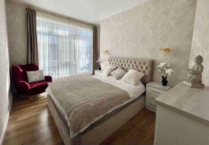 იყიდება 1+1 ბინა პრემიუმ კლასის კორპუსში. ფანჯრები გადაჰყურებს ქალაქს. იგი განკუთვნილია როგორც პირადი საცხოვრებელი და საინვესტიციო.