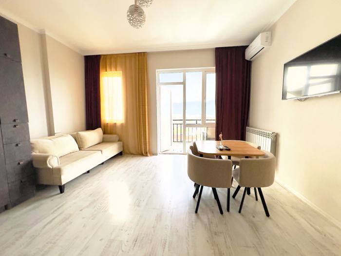 ხედი მთებზე! - ყველა კომუნიკაცია - შავი კარკასი - ბინა მდებარეობს 650 მეტრში ზღვისგან ბაგრატიონის/აეროპორტის მაგისტრალზე კარგ რაიონში • სახლი აშენებულია ხარისხიანი სამშენებლო მასალებისგან - ეზოში განთავსდება 4- პარკინგი, რესტორანი, სპა ცენტრ, ბავშვების გასართობი ზონა, სამედიცინო ცენტრი და სუპერმარკეტი! - სახლში იქნება თავისი მართვის ცენტრი, 24-საათიანი კონსიერჟითა და ვიდეო მეთვალყურეობით.