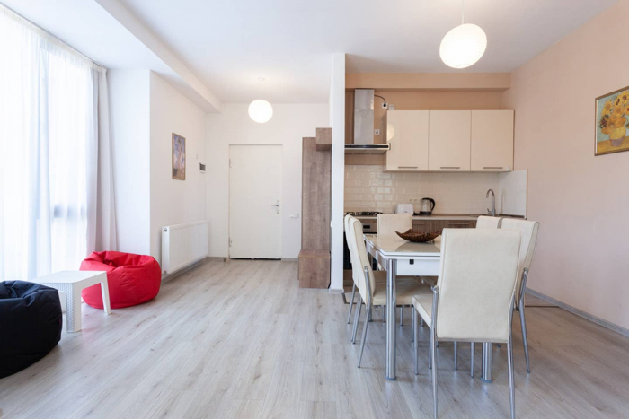 ქირავდება ახალგარემონტებული, ნათელი 2 ოთახიანი ბინა, სტუდიოს ტიპის მისაღებით და დამოუკიდებელი საძინებლით, სრულად აღჭურვილი ავეჯითა და ტექნიკით, ახალაშენებულ კორპუსში, ამაღლების ქუჩაზე.