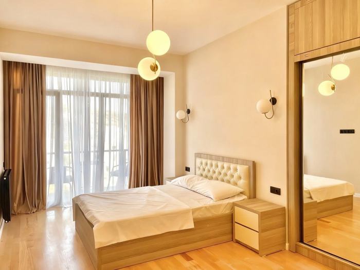 ქირავდება ახალი აშენებული, ნათელი და მყუდრო ბინა 79 კვ.მ ფართობით, მდებარეობს 24-სართულიანი კორპუსის მე-4 სართულზე. ბინაში არის 3 ოთახი, მათ შორის 2 კომფორტული საძინებელი, მისაღები და სასადილო ოთახი, თანამედროვე სამზარეულო და სარეცხი ოთახი. ბინას აქვს ორი აივანი, რაც დამატებით სივრცესა და სიმყუდროვეს ქმნის. საძინებლებში დაგებულია ხარისხიანი ხის იატაკი, რაც განსაკუთრებულ სითბოსა და კომფორტს ანიჭებს სახლს. ახალი გარემო იდეალურია ოჯახისთვის, ვისაც სურს მშვიდი და თანამედროვე საცხოვრებელი სივრცე.