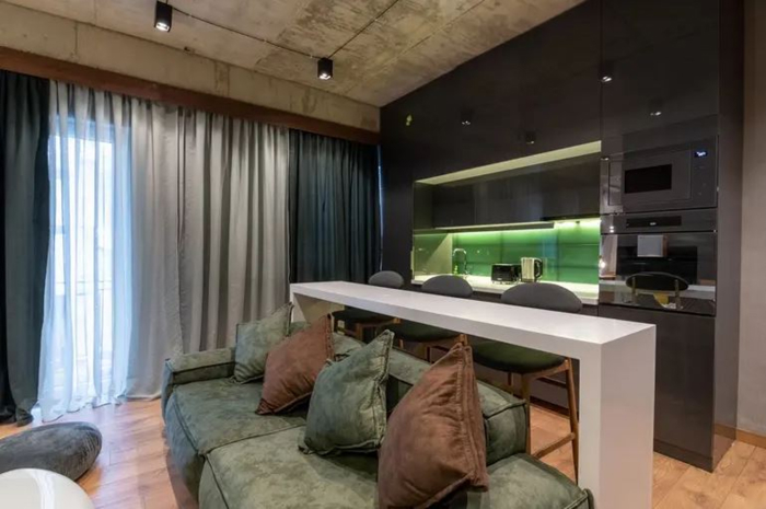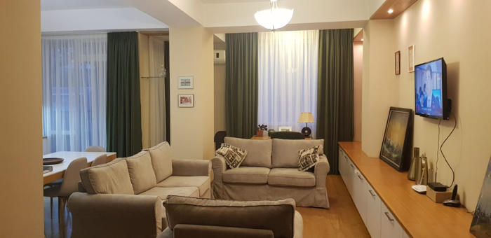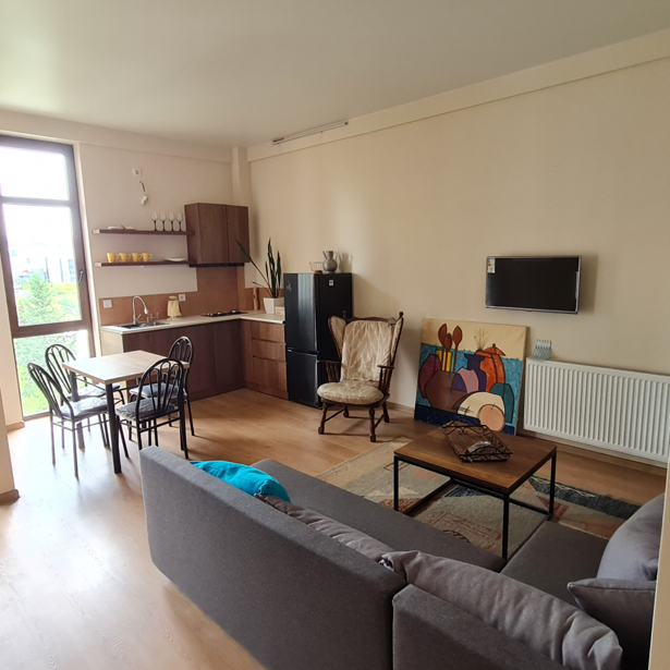 ქირავდება 1 საძინებლიანი 70 კვ. ბინა გამორჩეული დიზაინით, უმაღლესი ხარისხის რემონტით, სრლად აღჭურვილი ახალ აშენებულ კორპუსში. ბინა მდებარეობს მყუდრო და წყნარ ადგილას მშვიდ გარემოში