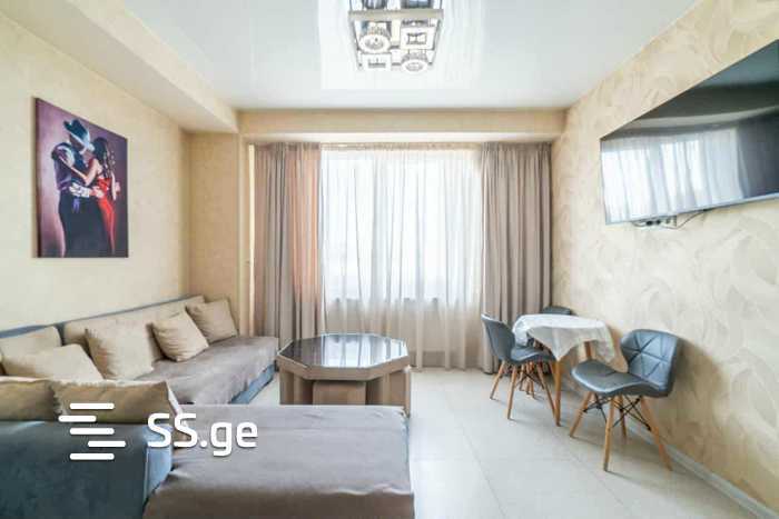 ქირავდება 100 მ² ის 3 ოთახიანი ბინა მარჯანიშვილის თეატრთან. გარემონტებული. აივნით, ორი საძინებელით (ორივე საძინებელში დამოუკიდებელი კონდიციონერით), ორი სველი წერტილით. სტუდიოს ტიპის მისაღებით.(დამოუკიდებელი კონდიციონერით) საერთო პარკირების ადგილით, შლაგბაუმით შემოსაზღვრულ ეზოში.