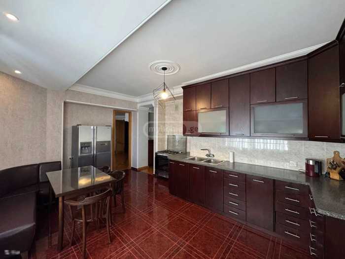 ქირავდება ახალგარემონტებული 224 კვ.მ ნათელი ბინა. ლამაზი ხედებით ქალაქზე. დიდი ოთახი ბუხრით, 3 საძინებელი. ყველა ოთახი იზოლირებული, თავისი აივნით. 2 სველი წერტილით. ყველა ოთახში დამონტაჟებულია კონდიციონერი. სამზარეულოს აქვს თავისი სათავსო/საკუჭნაო ოთახი და აივანი. ბინა მოწყობილია ავეჯით და ყველა სახის საყოფაცხოვრებო ტექნიკით.