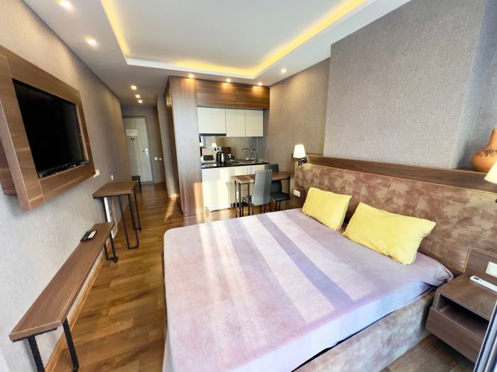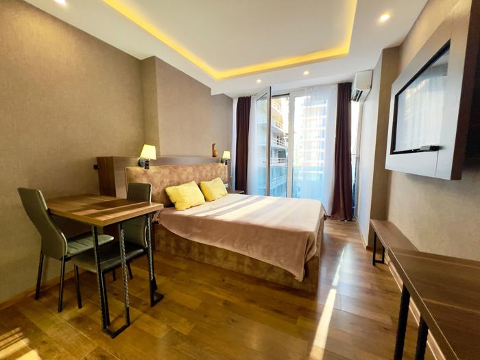 სასწრაფოდ ქირავდება ზღვის პირველ ზოლში სანრაიზის კომპლექსში, ახალი ავეჯით და ტექნიკით 2 ოთახიანი ბინა