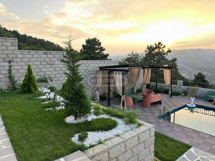 დაბა წყნეთის გასაყიდად გთავაზობთ ულამაზეს თანამედროვე სახლს, რომლის ფართობია 600 კვ.მ. თბილისის ცენტრამდე 30 წუთია. მიწის ნაკვეთის ფართობი შეადგენს 1000 კვ.მ. ინტერიერის დიზაინი თანამედროვე სტილშია. მაღალი ჭერი! უზარმაზარი პანორამული ფანჯრები სახლს შუქით ავსებს. სახლის განლაგება თქვენს დასვენებას მაქსიმალურად კომფორტულს ხდის. პირველი სართული: მისაღები ოთახი 53 კვ.მ., საიდანაც შეიძლება ვერანდაზე და აუზთან გასვლა. სრულად აღჭურვილი სამზარეულო ხელმისაწვდომობის ტერასა, ორი საძინებელი, სამი სველი წერტილი. მეორე სართული: დიდი საძინებელი საკუთარი აბაზანით და დიდი საგარდერობოთ, ოთხი საძინებელი და ორი სველი წერტილი, სამრეცხაო ოთახი. ავტოფარეხი ორი ავტოსადგომით. ბრწყინვალე ხედები ტყეში! არსებობს დამატებითი ტერიტორიების შეერთების შესაძლებლობა-იმ მხრიდან, სადაც სახლი ტყეს ესაზღვრება.