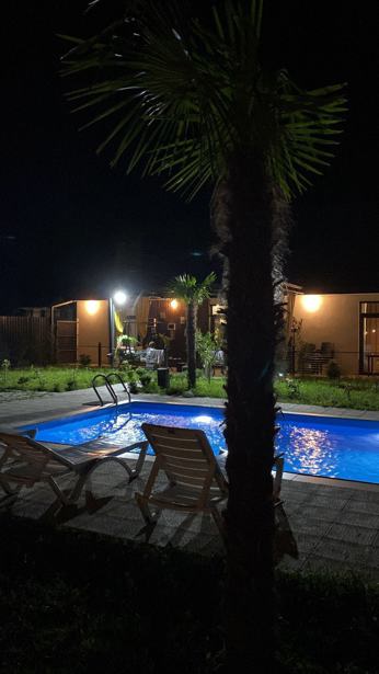 ქირავდება დღიურად ახალაშენებული ორსართულიანი სახლი აუზით. ეზოს ფართი 1100კვ.მ. ასევე ამ სივრცეში არის ცალკე 120 კვ.მ დამოუკიდებელი შენობა (მისაღები, კლუბი, ჰოლი)ევრორემონტით, ცენტრალური გათბობით, ვერანდით (30 კვ.მ) პარკინგით და კარგი ხედით. ტექნიკა: სარეცხის მანქანა, ჭუეჭლის სარეცხი მანქანა, მძლავრი ,,დინამიკი,, (sony)ეზოს განათება ,,გირლიანდები,, დიდი და პატარა მაყალი (გრილი ) შამფურები
