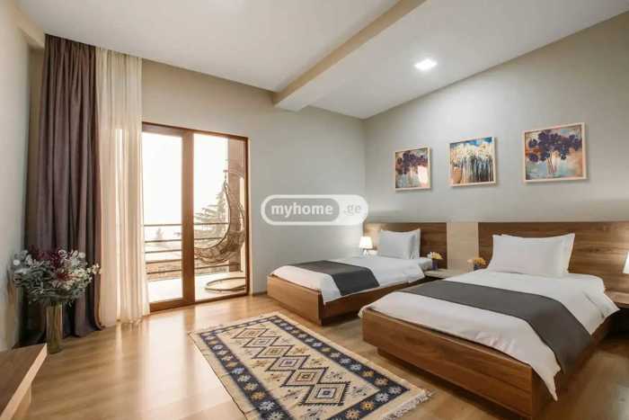 ქ.თელავის ცენტრში ჭადართან ერეკლე მეფის ძეგლიდან 100 მეტრში იყიდება ორ სართულიანი მოქმედი სასტუმრო აპარტამენტი რომელიც გათვლილია შვიდ პერსონაზე , შესაძლებელია პერსონების გაზრდა . სასტუმროს ორივე სართული აღჭურვილია ახალი ცენტრალური გათბობით, არისტონის ბოლო თაობის ჭკვიანი ვაიფაი მხარდაჭერის მქონე ქვაბით დისტანციური მართვის საშუალებით,,ყველა ოთახში დამონტაჟებულია ახალი კონდიციონერები,სასტუმრო აღჭურვილია 24/7 სამეთვალყურეო კამერებით გარე პერიმეტრზე, ასევე ფანჯრები აღჭურვილია რკინის გისოსებით,მუდმივ წყალთან ერთად მოწყობილია წყლის რეზერვუარი, სასტუმრო აპარტამენტს აქვს 100 კვადრატული ლამაზი ეზო, სასტუმრო მდებარეობს წყნარ და ძალიან მშვიდ ადგილას.