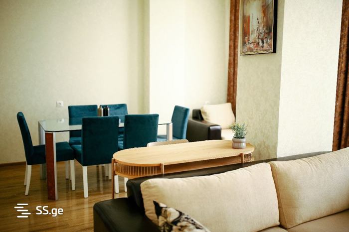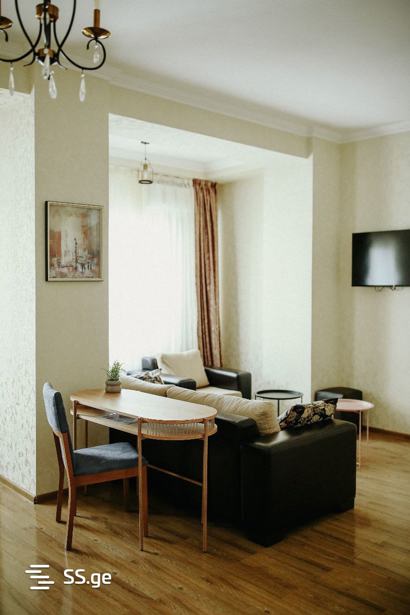 110 კვ. მეტრი ბინა მდებარეობს მთაწმინდაზე, შევჩენკოს ქუჩაზე, 6 სართულზე, პანორამული ხედით თბილისზე. ახალი რემონტი თანამედროვე სტანდარტით, ავეჯით. ორი საძინებელი ოთახი, სასტუმრო/სასადილო ოთახი, სამზარეულო, 2 სველი წერტილი, აივანი. ბინაში არის 2 კონდიციონერი, ტელევიზორი, ინტერნეტი, სარეცხი მანქანა, სარეცხის საშრობი, ჭურჭლის სარეცხი მანქანა, ელექტრო ღუმელი, მაცივარი. გერმანული გათბობის სისტემა.