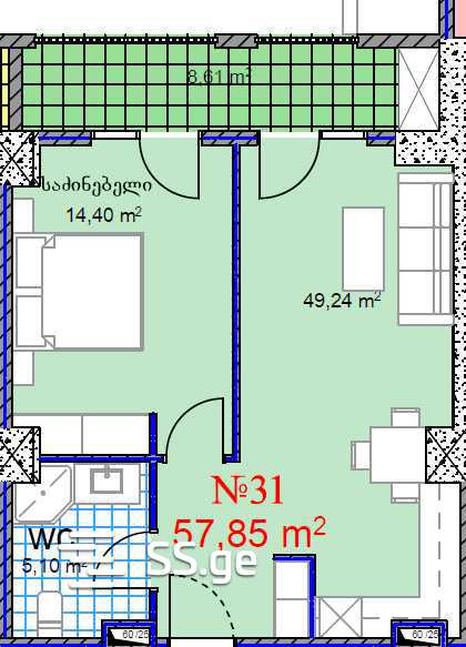 იყიდება 2 ოთახიანი ბინა ბაგებში