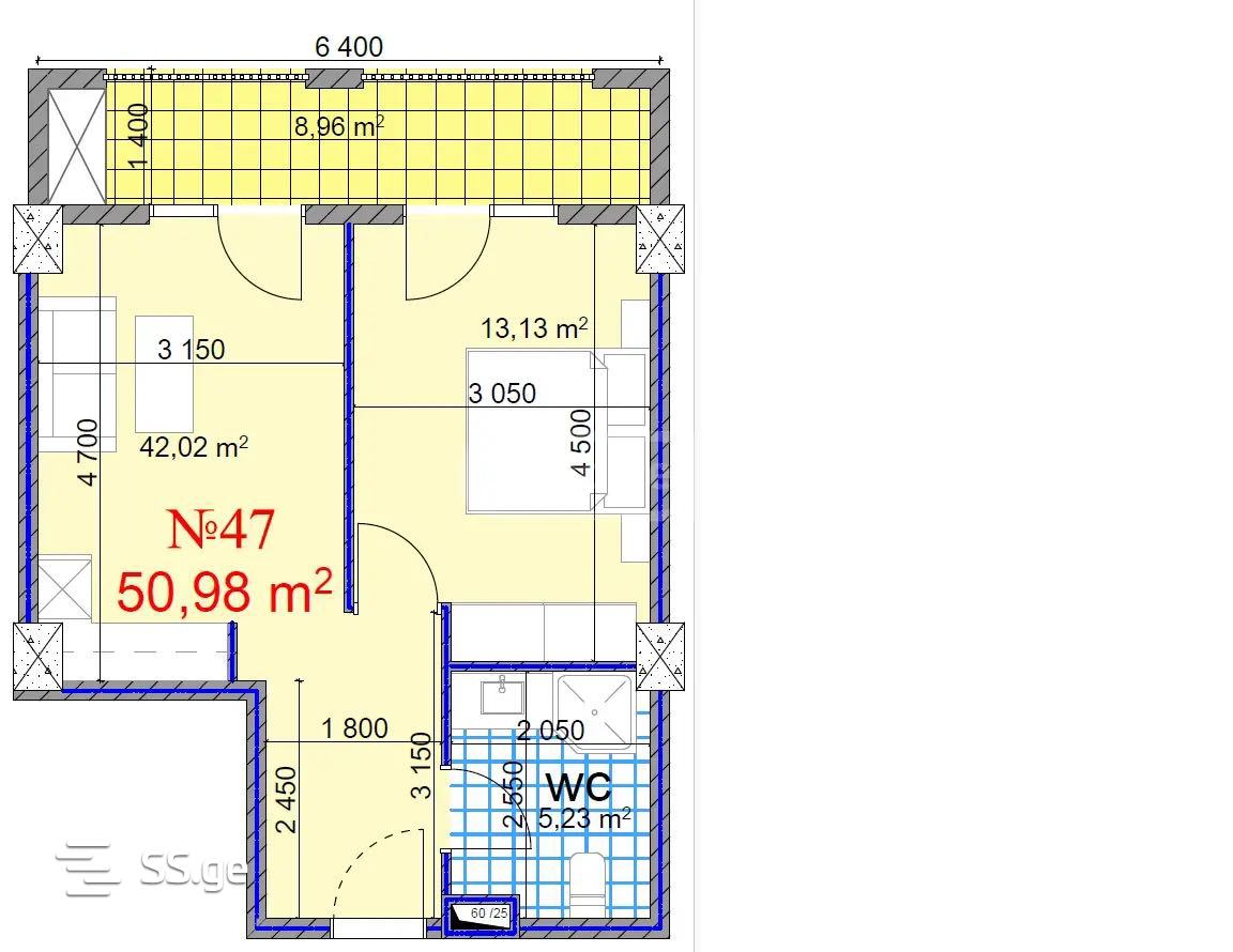 იყიდება 2 ოთახიანი ბინა ბაგებში