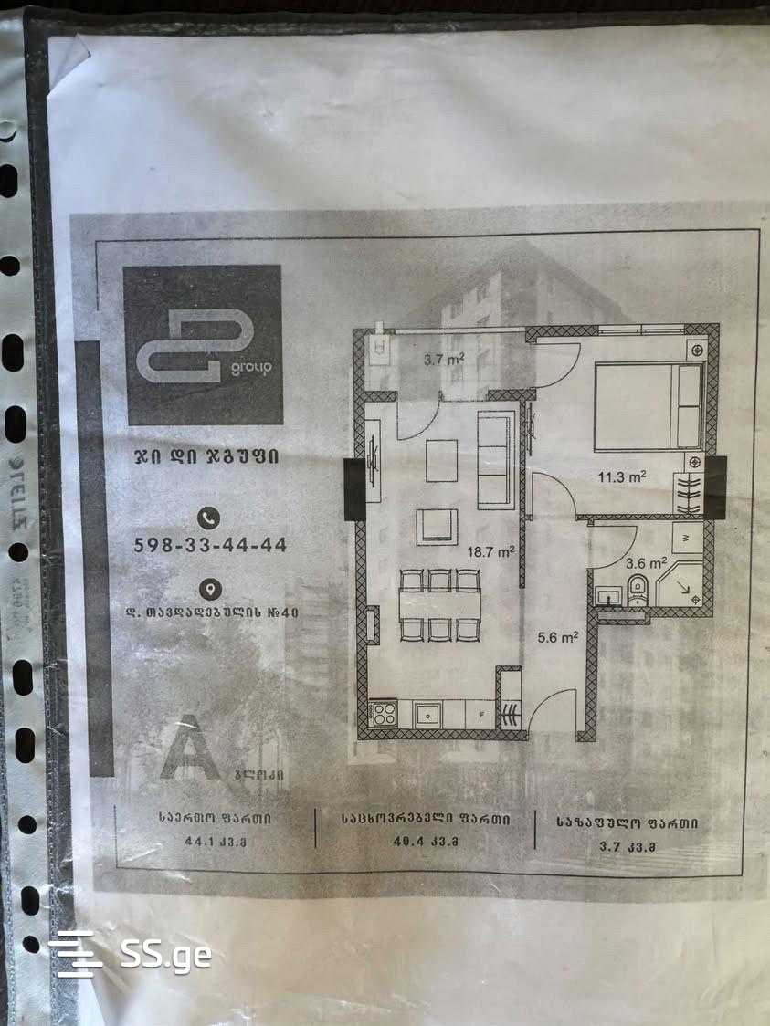 იყიდება 2 ოთახიანი ბინა დიდ დიღომში
