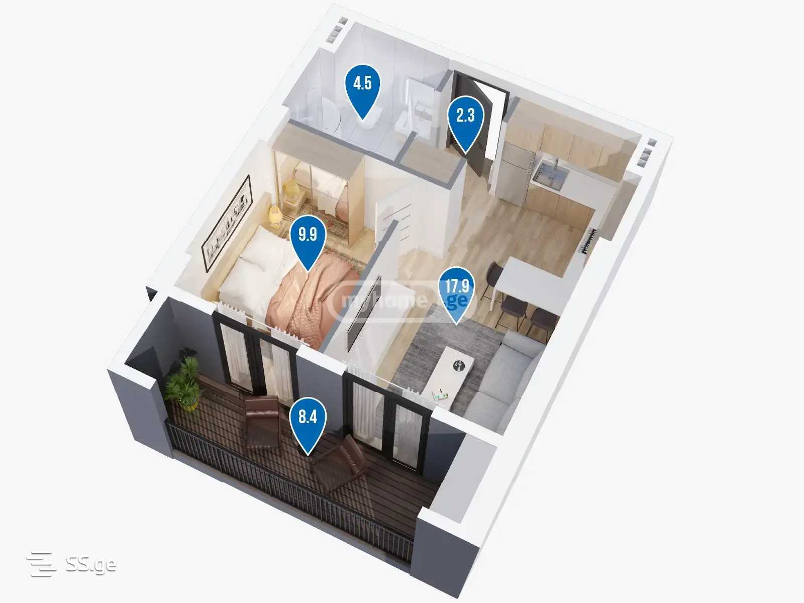 იყიდება 2 ოთახიანი ბინა დიდ დიღომში