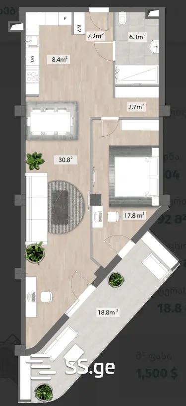 იყიდება 2 ოთახიანი ბინა სამგორში
