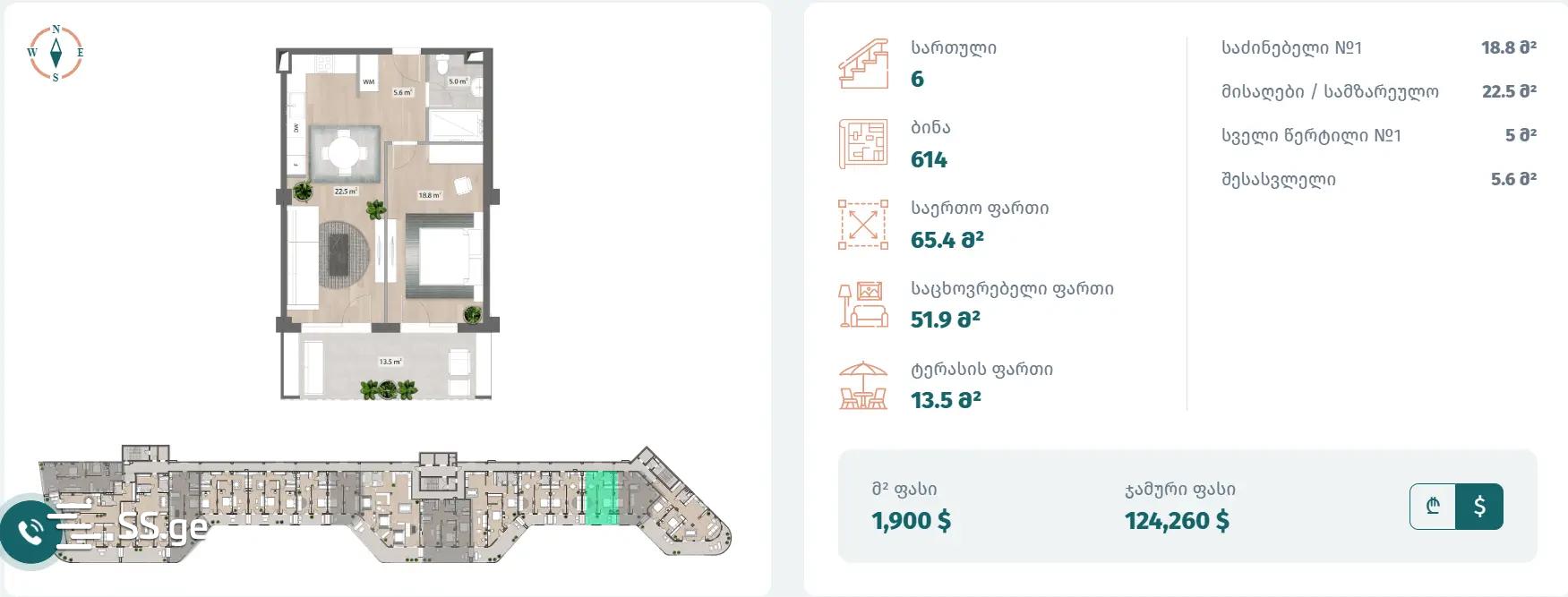იყიდება 2 ოთახიანი ბინა სამგორში