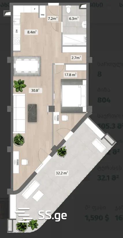 იყიდება 2 ოთახიანი ბინა სამგორში
