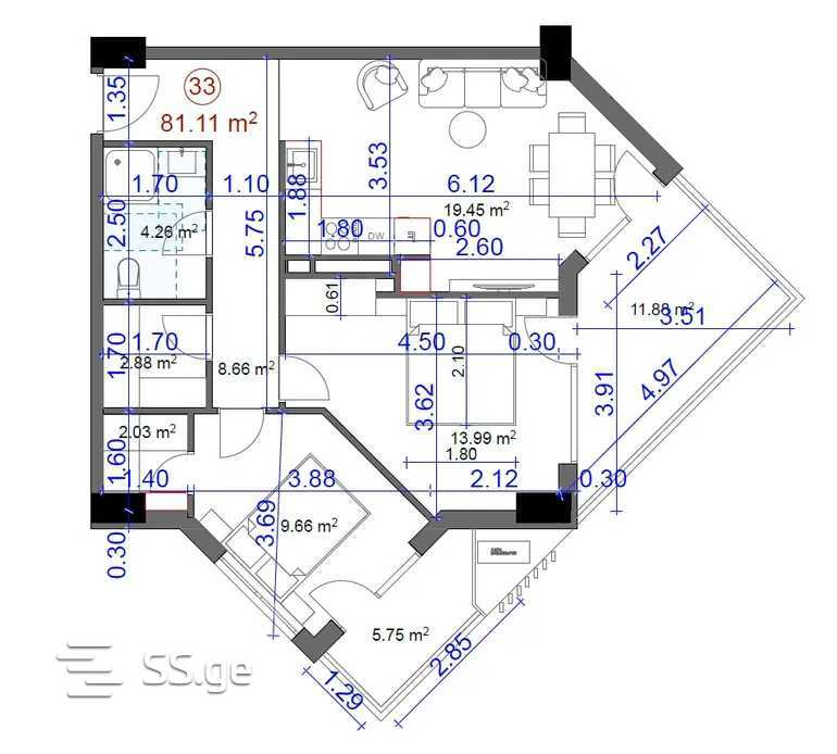 იყიდება 3 ოთახიანი ბინა საბურთალოზე