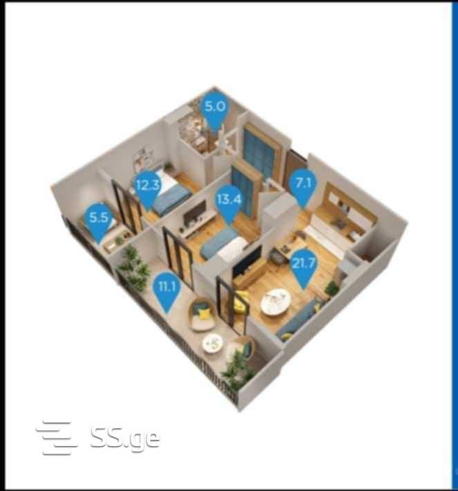 იყიდება 3 ოთახიანი ბინა სანზონაში
