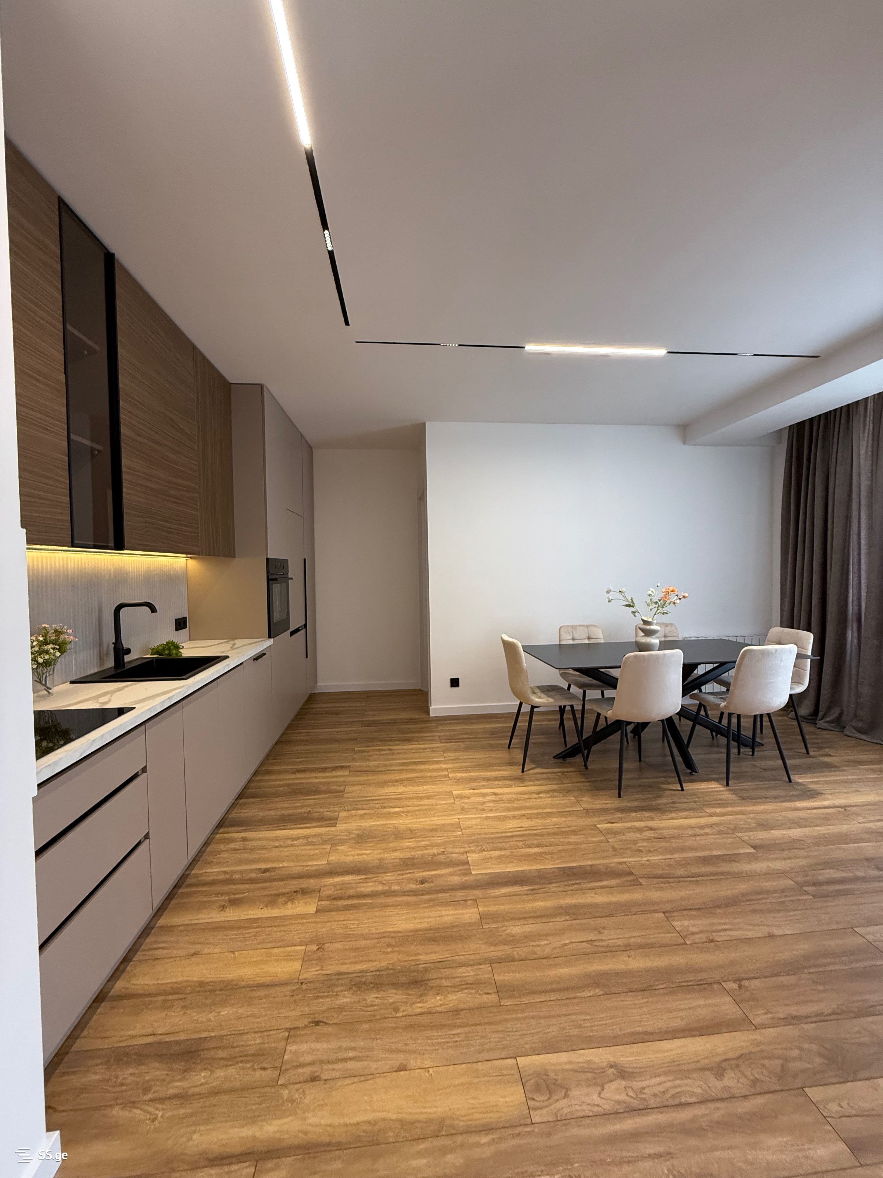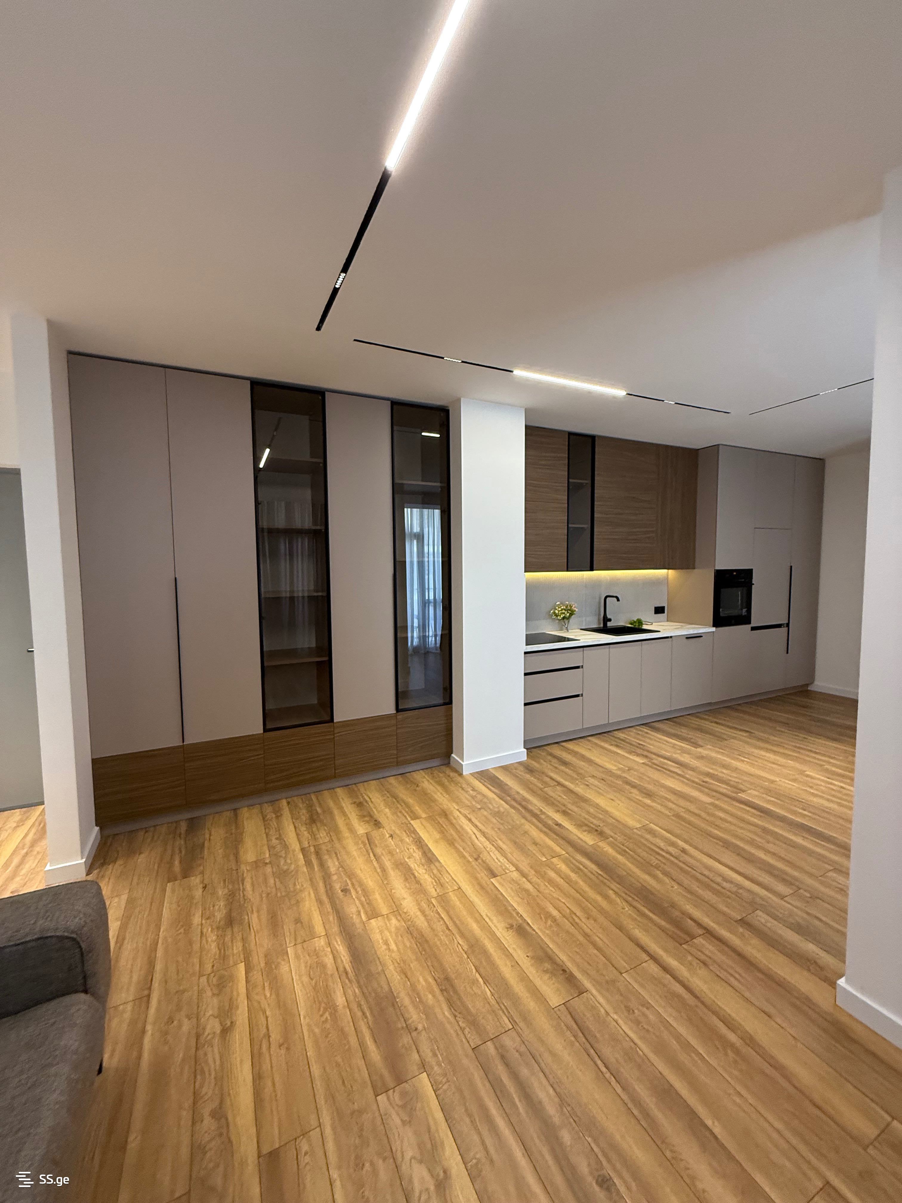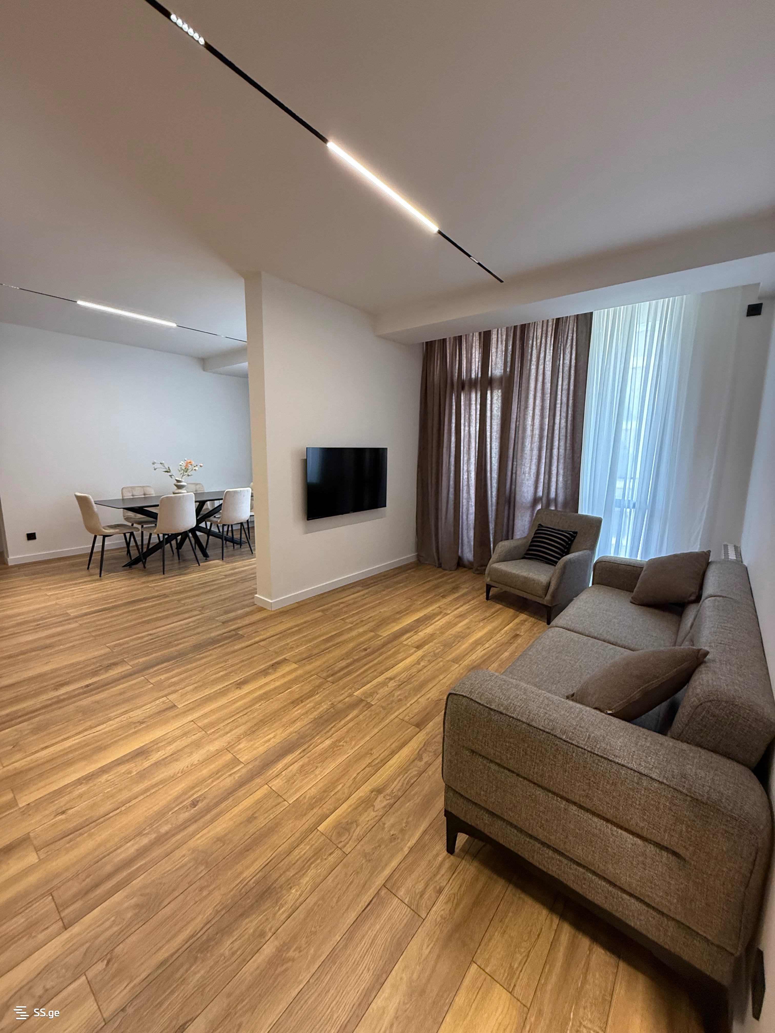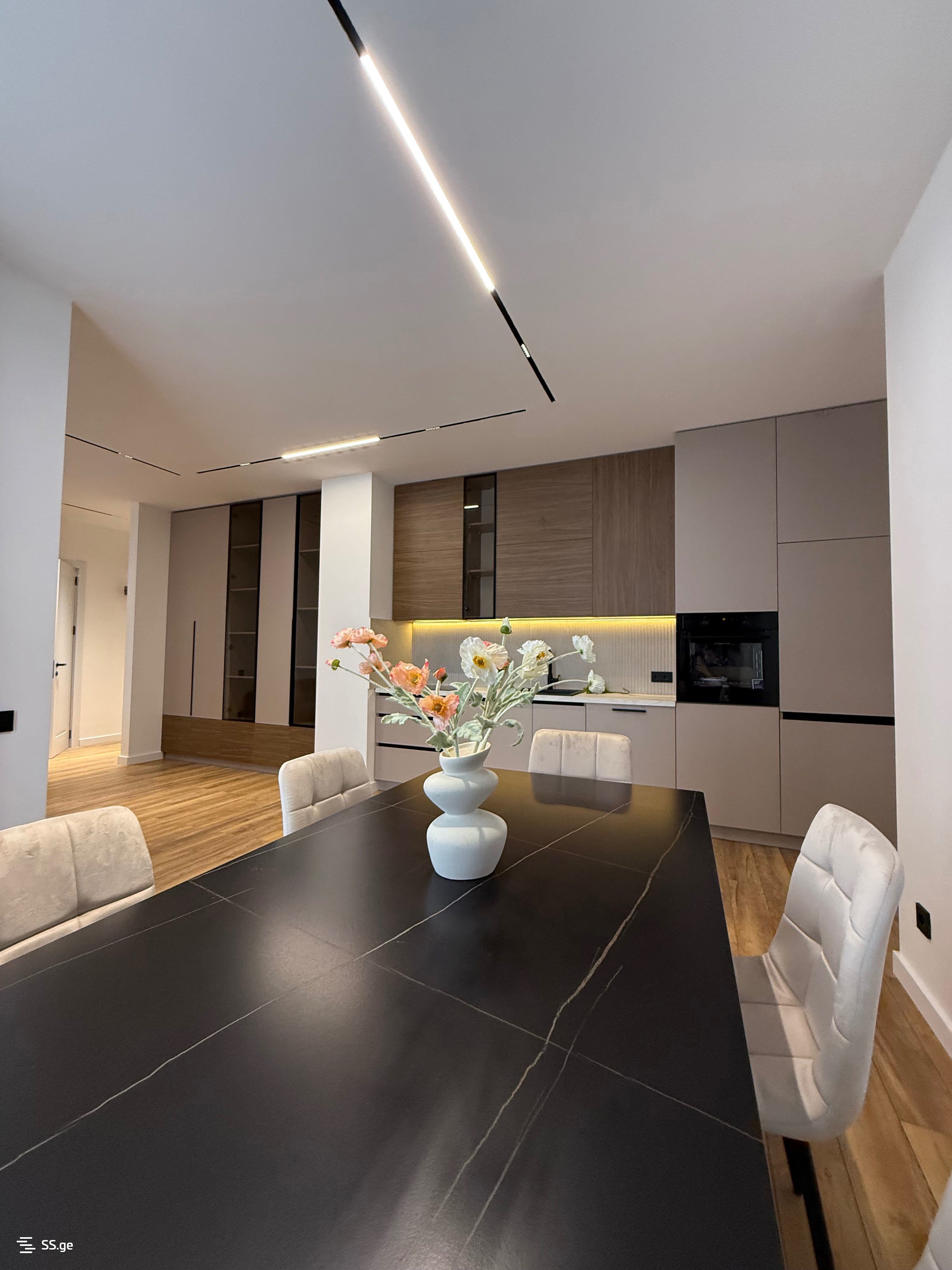 For sale: terrace in the Saburtalo complex on Anjaparidze street, on the 21st floor with two bedrooms. The apartment has been renovated with high-quality finishing materials and is furnished with high-quality furniture and appliances. The building is serviced by a comfort elevator.