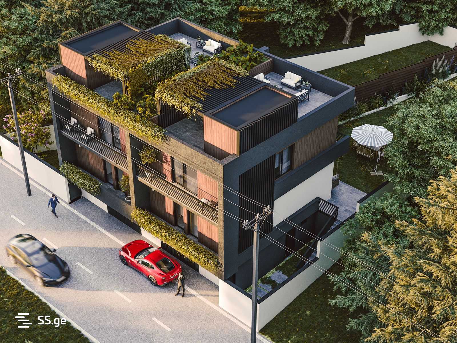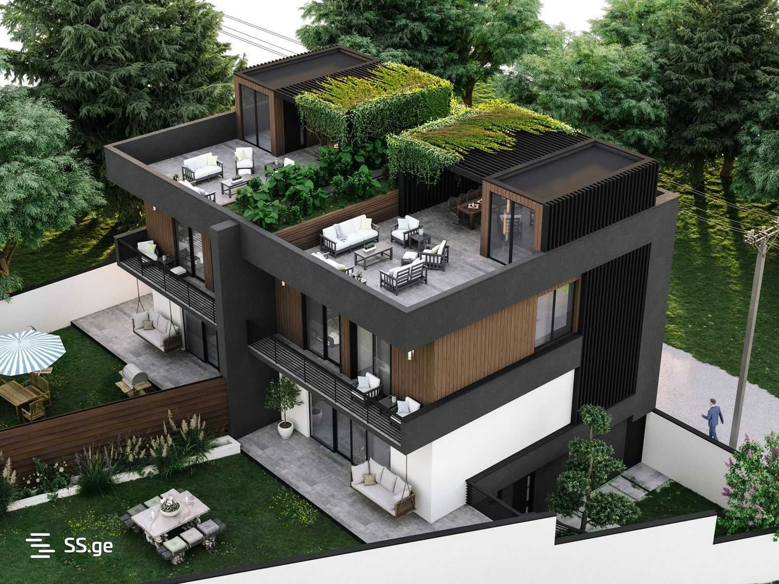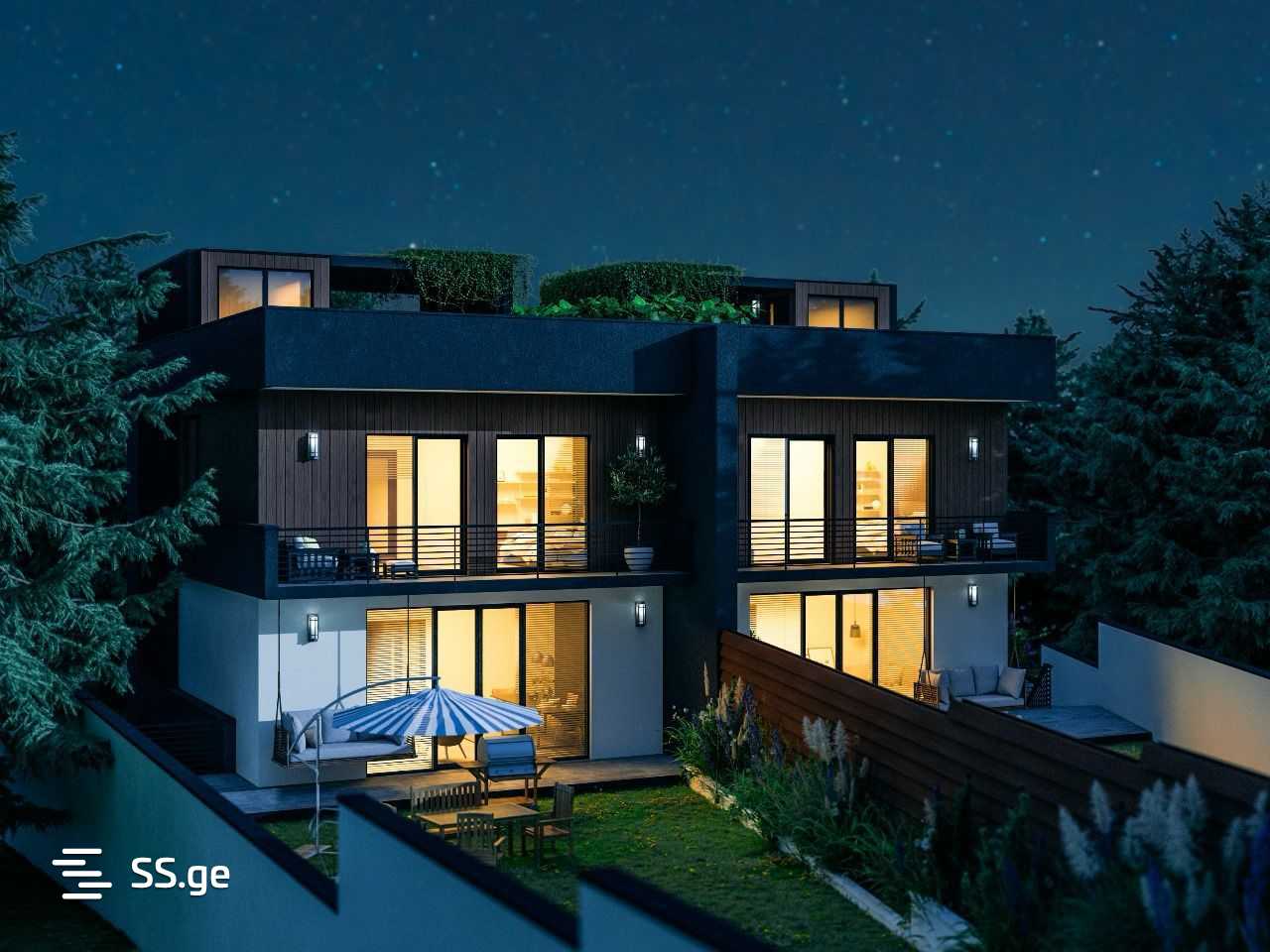 For sale is a finished black frame. An individual two-story house is built on 600 square meters of land, the total area of each house is 297 m2 (-1 floor 59.9, 1st and 2nd residential floors with balconies 160.7 m2 and terrace 77.2 m2, the clean area is given excluding the external walls, as registered in the registry) each house has a yard left over of 210-220 m2.