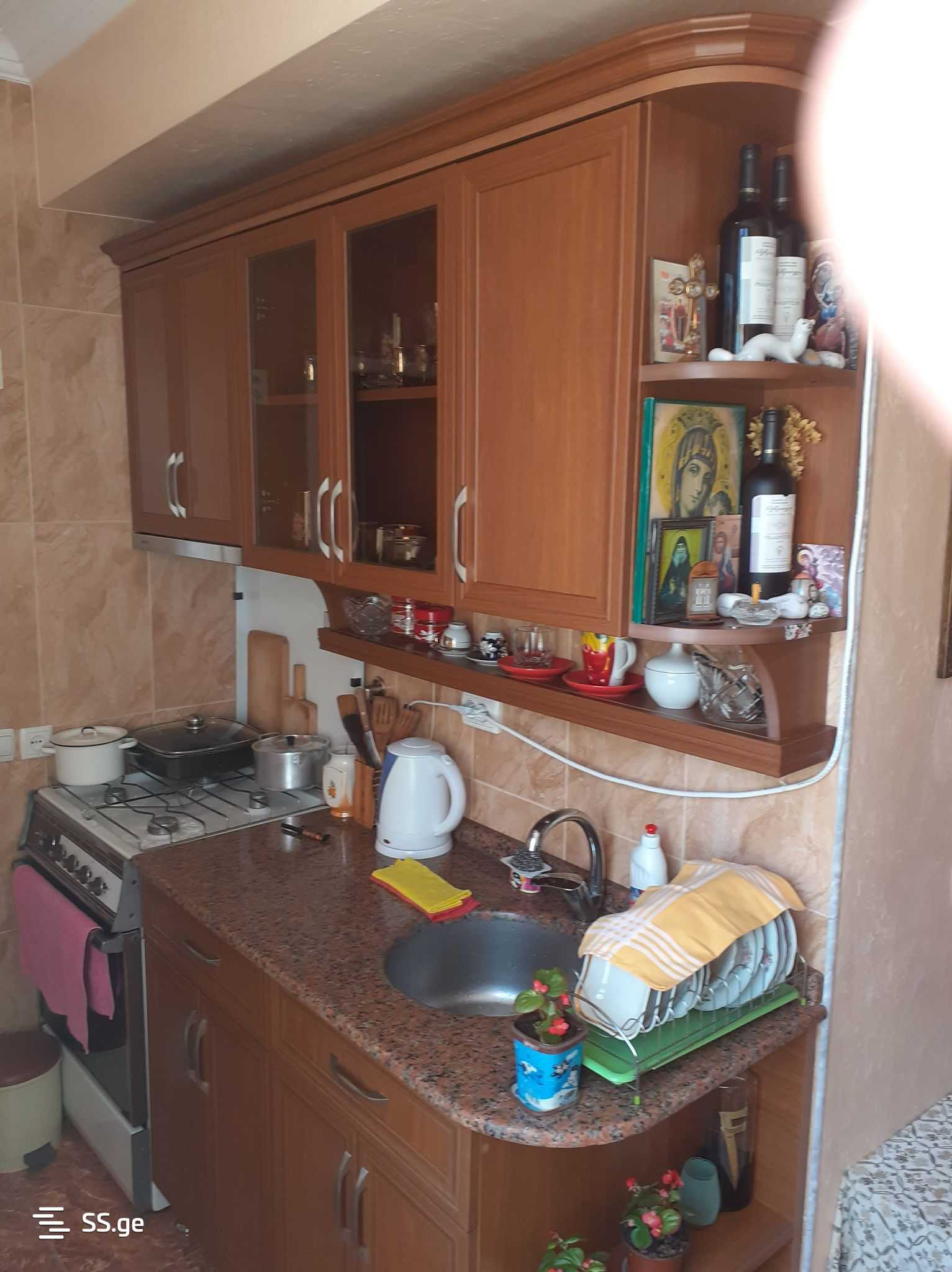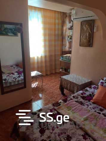 In Batumi, Zurab Gorgiladze’s (former Gorki) St. #54/62, near the dolphinarium, on the II floor of a 9-story building, an apartment is available for rent daily (50 GEL per day/night) for 1-2 people, isolated, comfortably furnished, cozy, bright, with heating, a kitchen, a shower-toilet, furniture, appliances, and a double soft bed; the apartment has: iron entrance doors, constant cold-hot water, a TV, internet (WIFI), cable television, air conditioning, refrigerator, iron, gas stove, electric kettle, kitchen inventory, dishes, bed linen, free parking space in the yard; near the building there is the “May 6th (former Pioneers) Park” with views of the lake and sea, a zoo, a dolphinarium, seaside boulevard, a hypermarket “Goodwill,” brand stores, cafe-restaurants. Transport operates in all directions. Mobile: 577302248.
