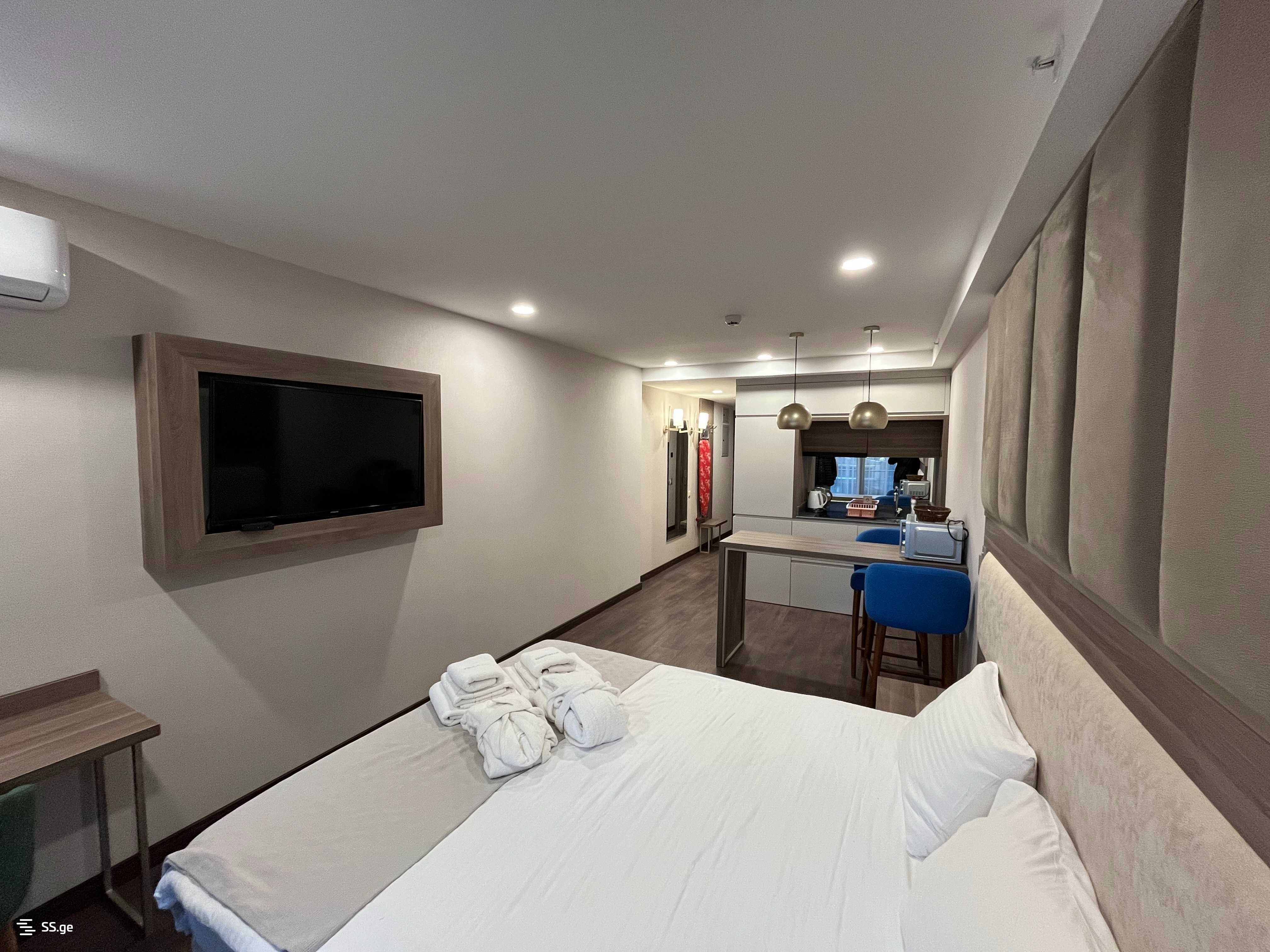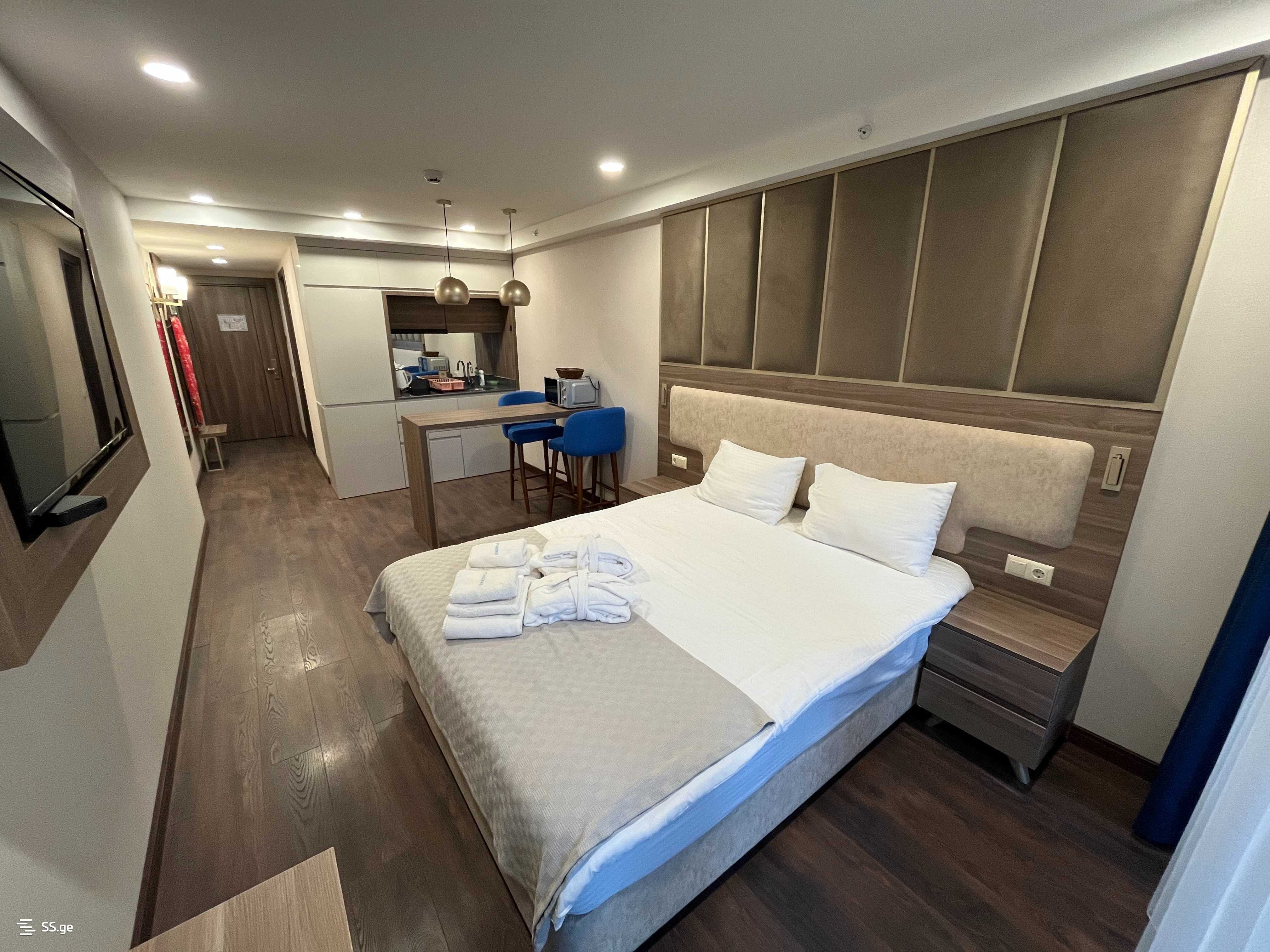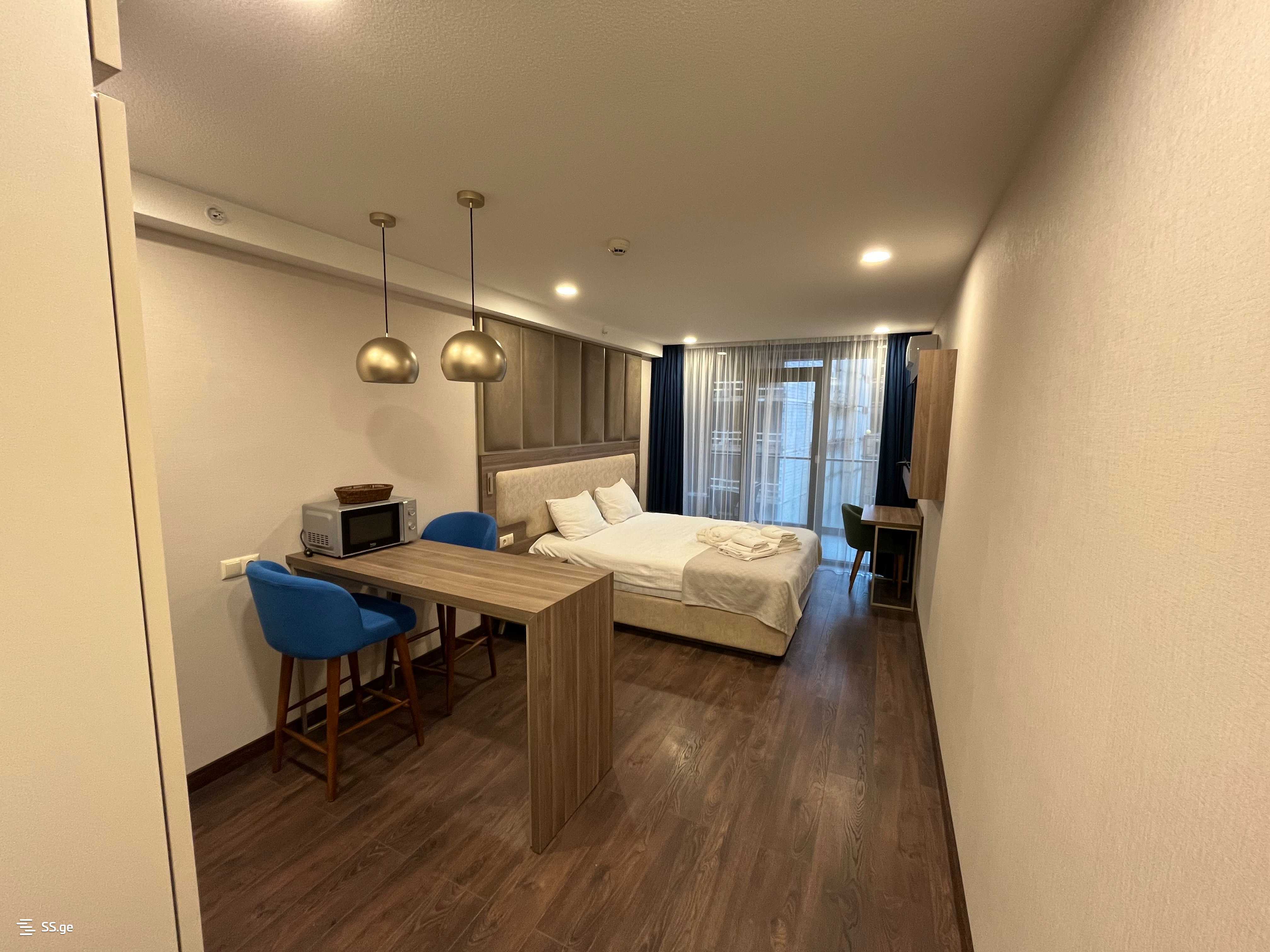 In Batumi, in the premium class complex Wyn Residence (La Quinta by Wyndham), I will rent out a beautiful, bright studio, 35 sq.m., 7th floor, with a balcony, sunny side 150 m. from the sea. The apartment is located in the New Boulevard area, not far from Metro City shopping center. Quiet place, good sound insulation. The studio is rented fully furnished and equipped with appliances: large bed, quality mattress. Smart TV, cable TV, induction stove, extractor fan, refrigerator, kettle, coffee maker, microwave, washing machine, hairdryer, iron, safe. Clothes dryer, dish set, high-speed internet, Wi-Fi, desk for office work, 2 sets of bed linens, towels, and bathrobes. Air conditioner, fire alarm. IN THE COMPLEX: High-speed elevators, cleaning and maintenance services. Goodwill supermarket, cafeteria with home food. Outdoor and indoor pool, café, bar, cinema, gym equipment. Administrator, security, and video surveillance 24/7. Address: 18 Rejeb Nizharadze Street, Batumi. Long-term rental. No commission for the agent. Owner. WhatsApp/Telegram