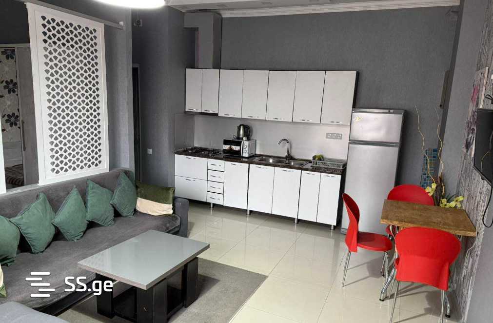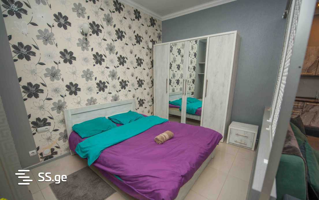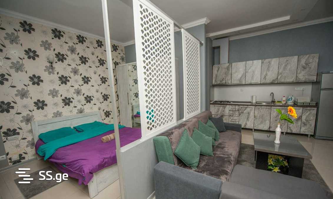 In Chughureti, on Tsinamdzghvrishvili Street, a newly built apartment with 1.5 rooms is for rent with necessary furniture and appliances. The bedroom is separated from the living room and kitchen by a decorative wall. The apartment is bright and cozy. It is designed for 2 people.
