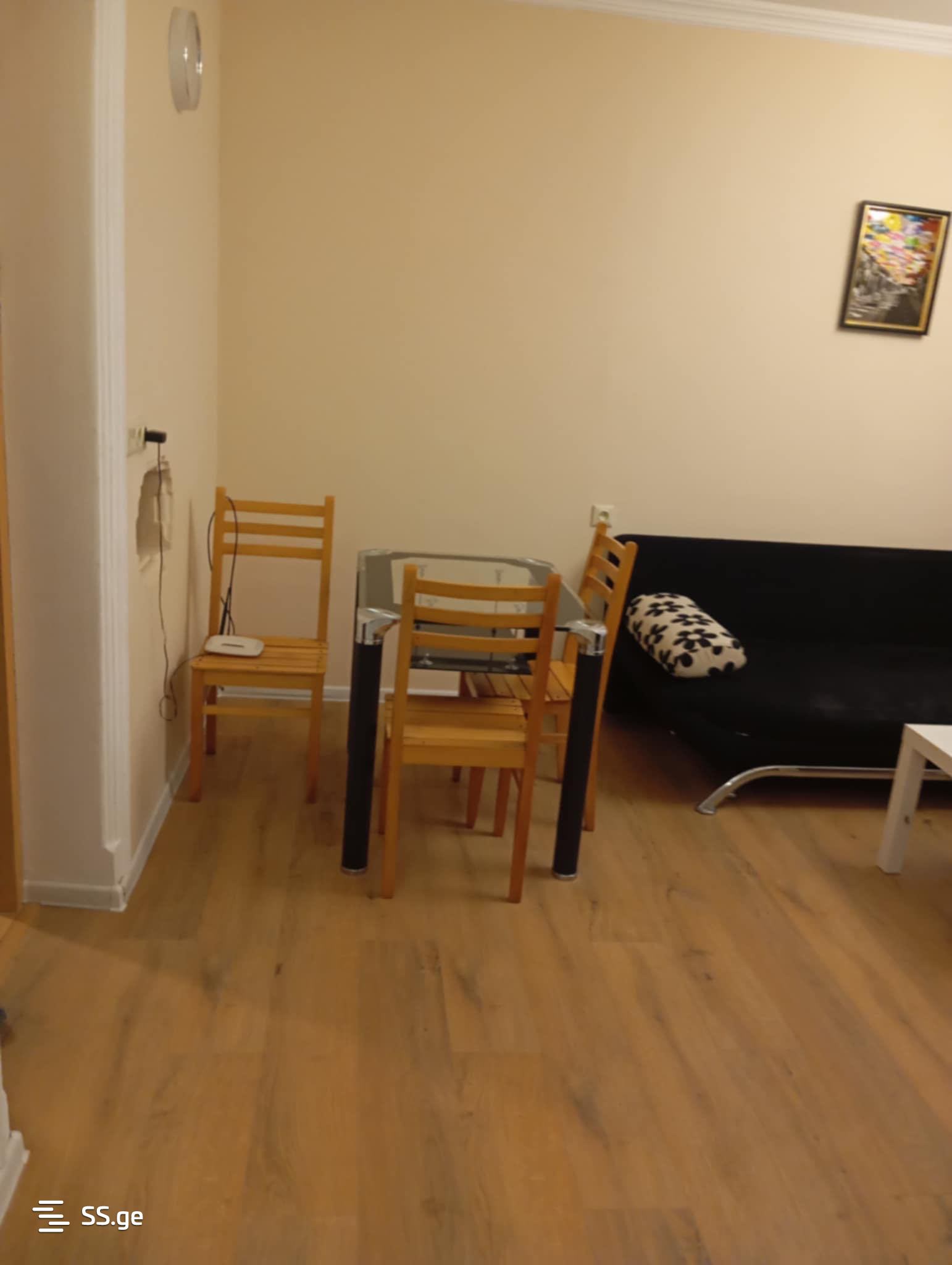 The apartment is located 2-3 minutes away from Akhmeteli Metro, at the beginning of the 2nd micro district. The apartment is available for rent monthly. It has a TV, internet, washing machine, refrigerator, and other household appliances.