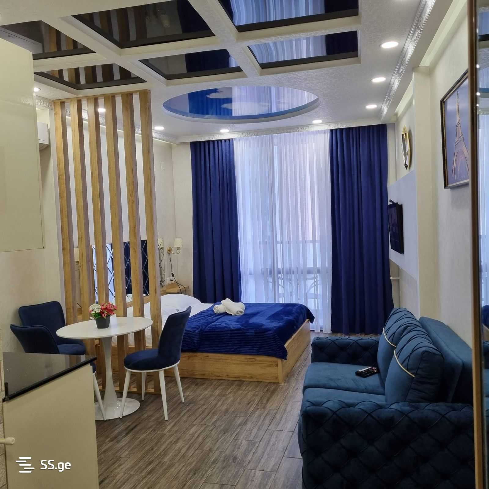 For rent in Batumi, in the prestigious Ramada Plaza complex on Shartava, 36 sq.m studio-type apartment. Furnished, with appliances and a balcony. Floor: 12/30. Price: $400.