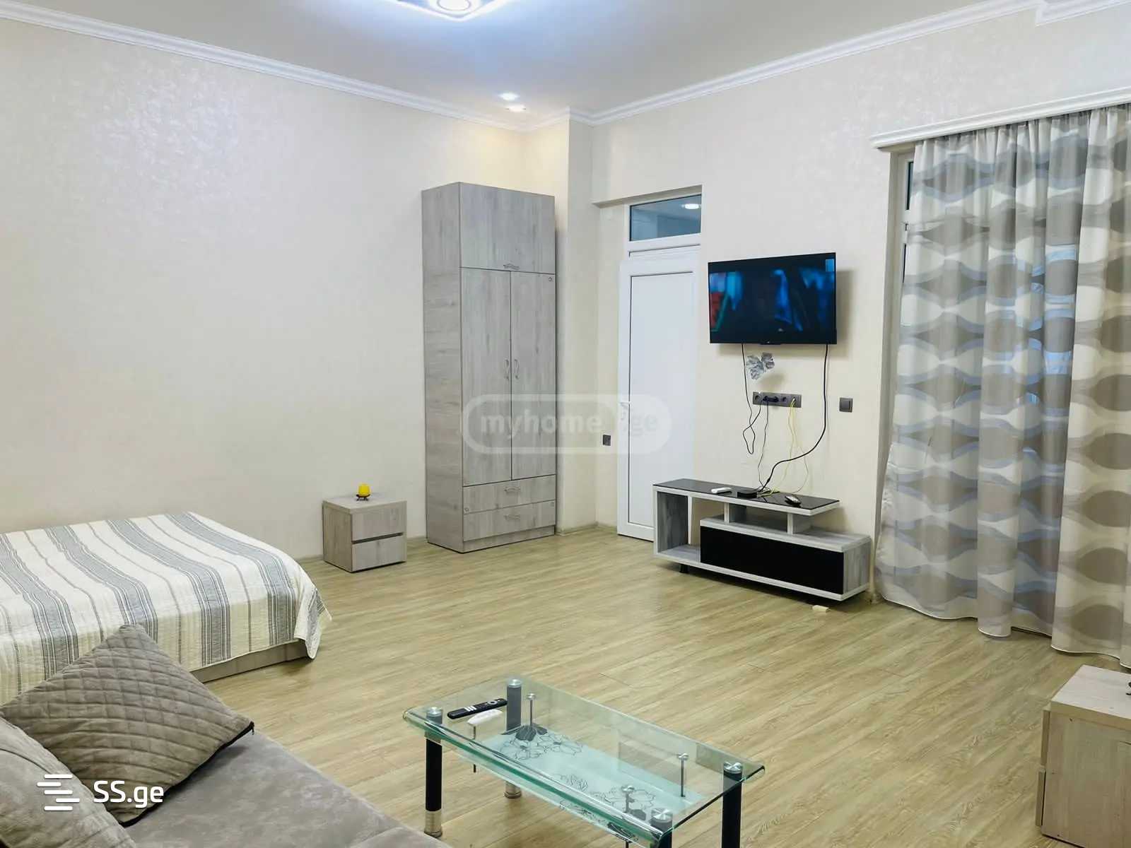 A cozy studio-type apartment is for rent in the city center, behind the Rustaveli Theatre. The apartment is equipped with all necessary inventory and furniture. You will pay 2 months' rent in advance.