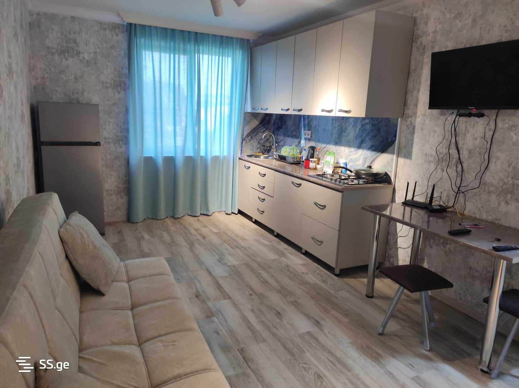 For rent: a 1-room studio-type apartment with an isolated bedroom in old Rustavi! Mayakovski Street. With furniture, appliances, air conditioning, price 600 lari.