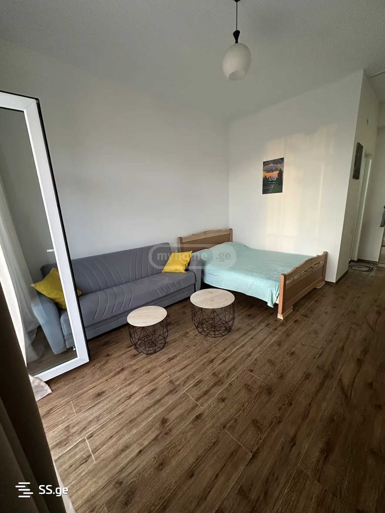 An apartment is for rent furnished with appliances and furniture, with payment for the first and last month.