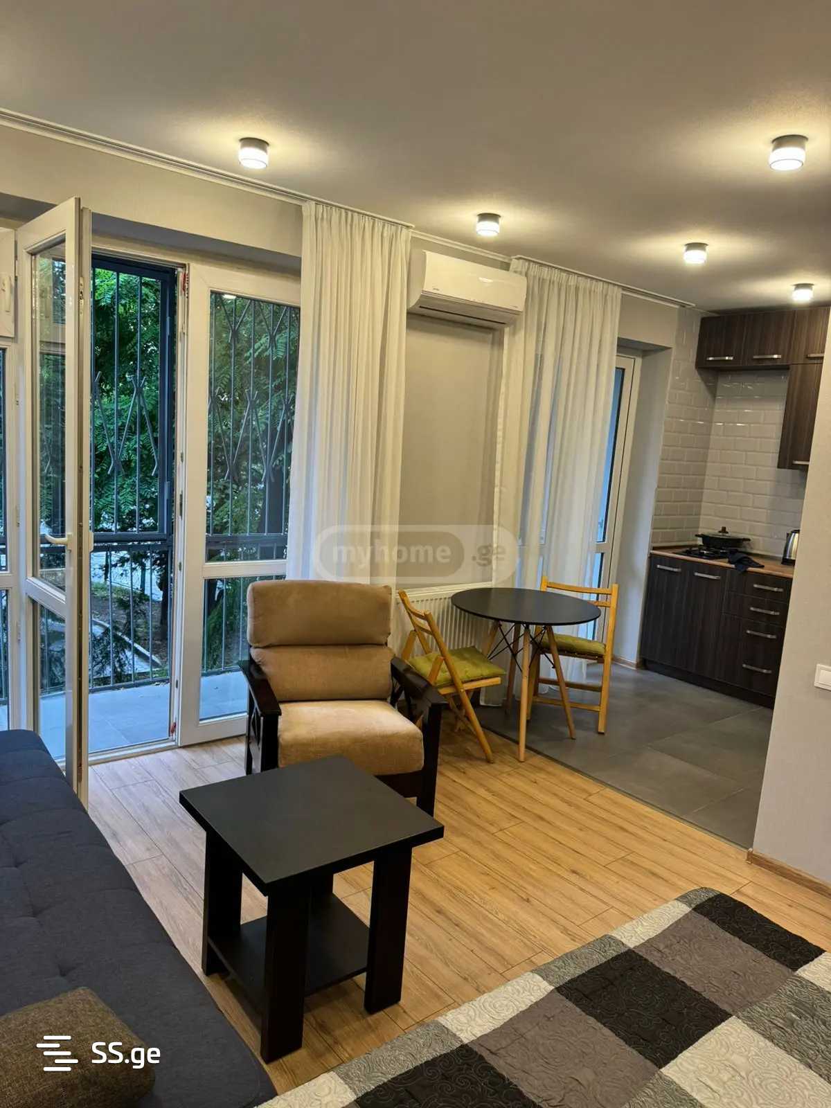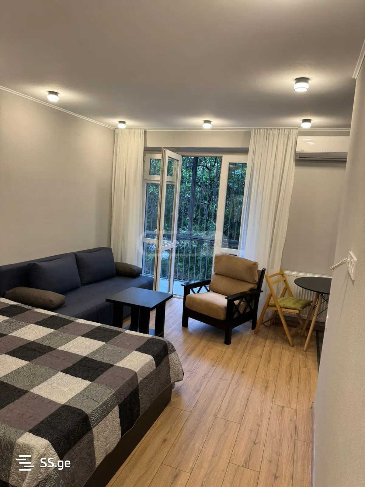 An apartment is for rent near the metro, with repair, furniture, and appliances. The pictures do not show a television and thick curtains.