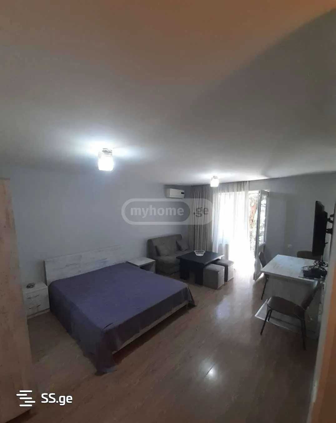 For rent: a 1-room apartment on Nutsubidze Street. Clean apartment, with European renovation, central heating, and air conditioning on the second floor. The location is very good, the Vaja-Pshavela metro is nearby, and transport operates in all directions.