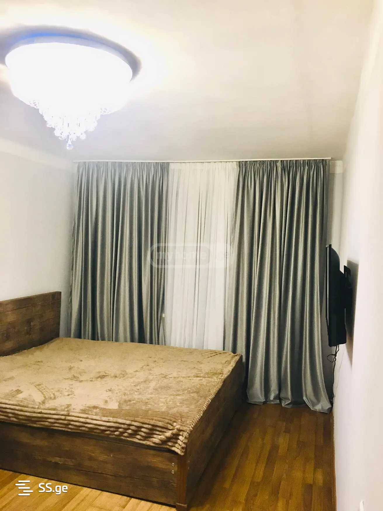 Apartment for rent near the University metro station. The apartment is cozy, bright, and in a green yard. There is a public transport stop near the building. It is equipped with all necessary furniture and appliances. The price is 1100 GEL.