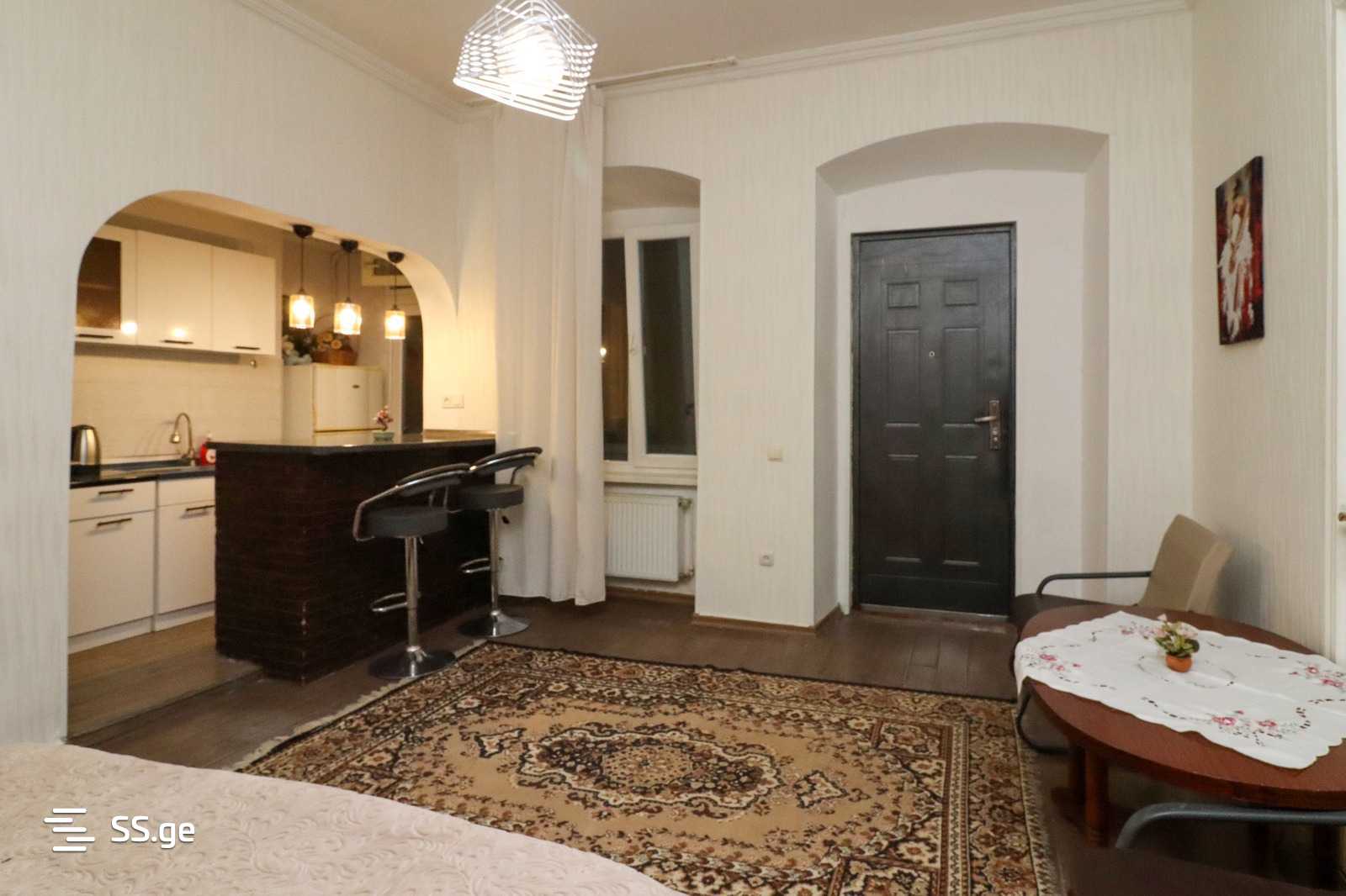 A one-room studio-type apartment is rented on the second floor, a five-minute walk from Freedom Square in the city center, furnished and equipped with necessary appliances,,,with central heating in a cozy beautiful yard. The monthly price is $300 without utility charges. The utility bill amounts to 50 GEL per month without internet and heating, with an additional 100 GEL per month for heating during the heating season. I am the owner, agencies should not call me. Tel 599518193.