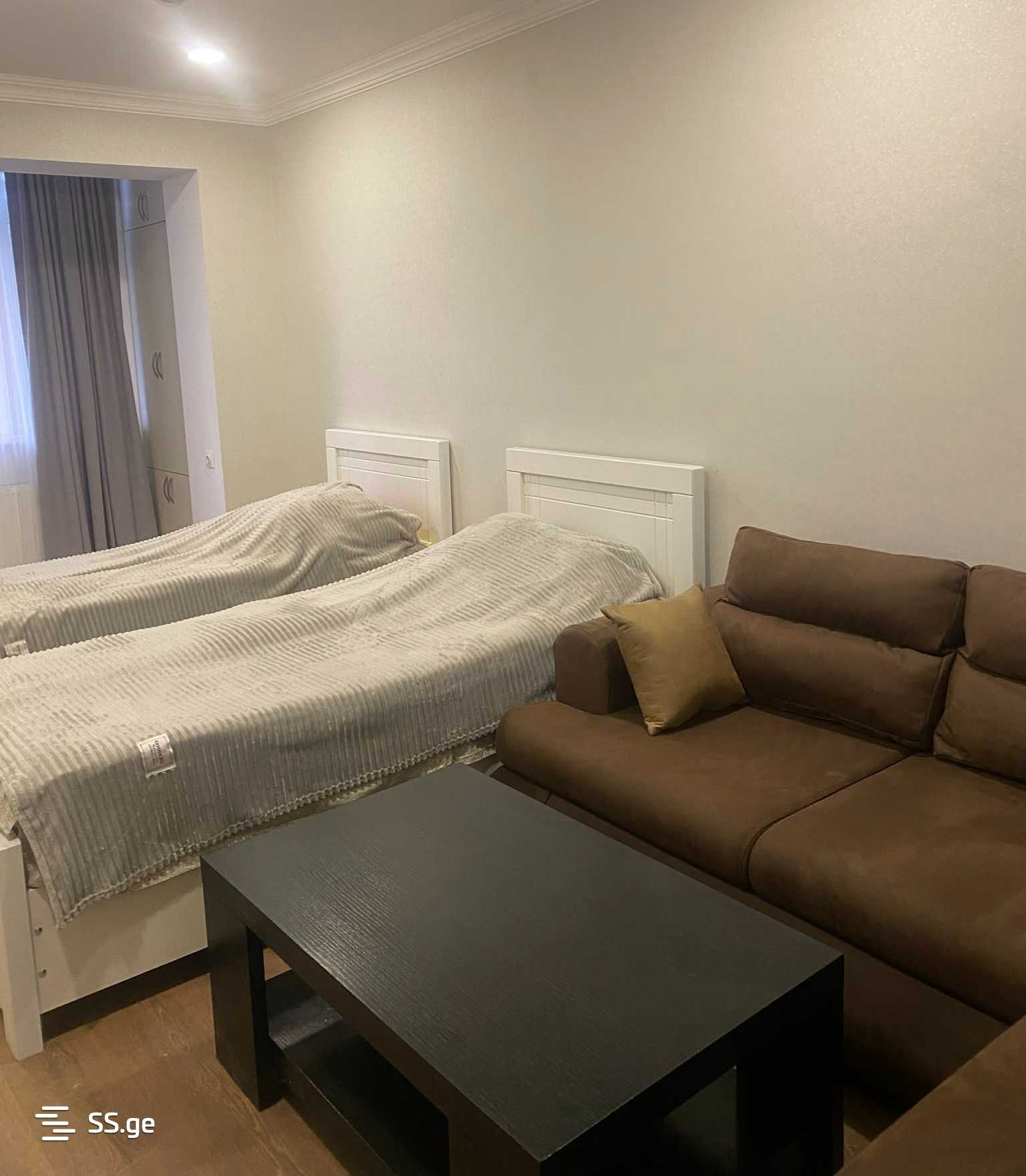 For rent: 1-room, newly renovated, uninhabited, 47 sq.m. apartment, bright, cozy, and economical (warm in winter and cool in summer), with an iron door, central heating, a large balcony, furnished with necessary furniture and appliances. There is a bus terminal 100 meters from the building, from which transport goes in various directions. The price is negotiable.