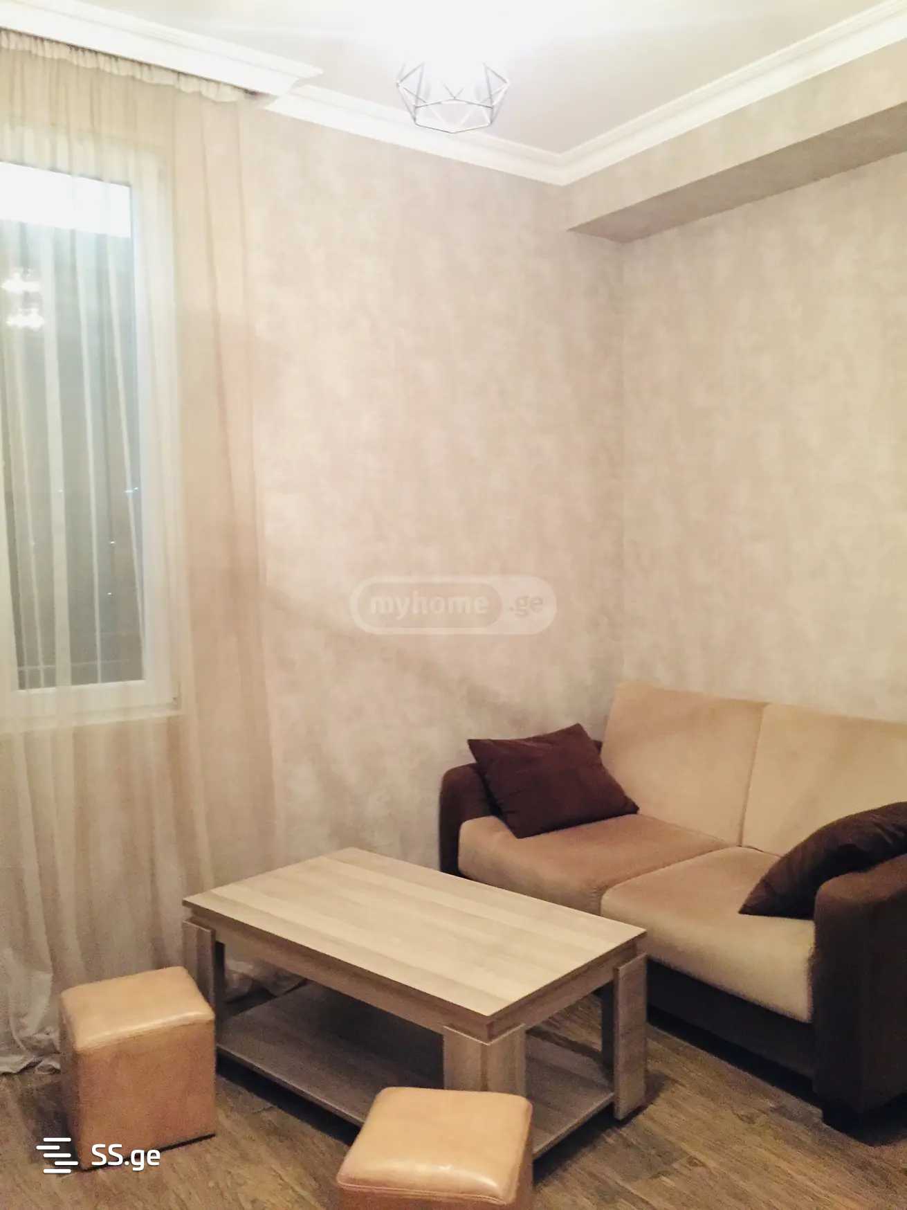 An apartment is for rent in Vazisubani. The apartment is equipped with necessary appliances and furniture. You pay in advance for two months.