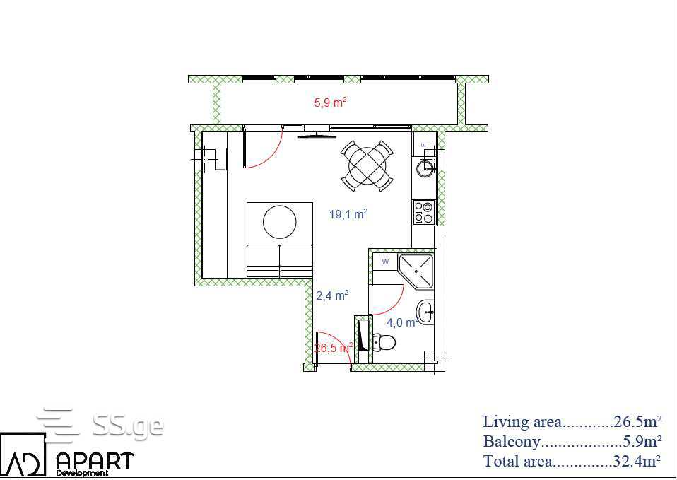 Urgently! A green frame of 32.8 square meters is for sale in the complex of Apart development "Old city panorama". Apartment. The company is repairing the balcony. The apartment is located in "A Block", the construction of which has been completed and renovation works are in progress. If repairs are made, life can already be done. Comes in green frame condition. The price is $69,000. The apartment will have an entrance iron door, a stretched floor, central heating pipes, internal beams, electric points installed/wired, complete electrical installation of the apartment, natural gas and electric supply meters. the so-called The balcony is fully covered