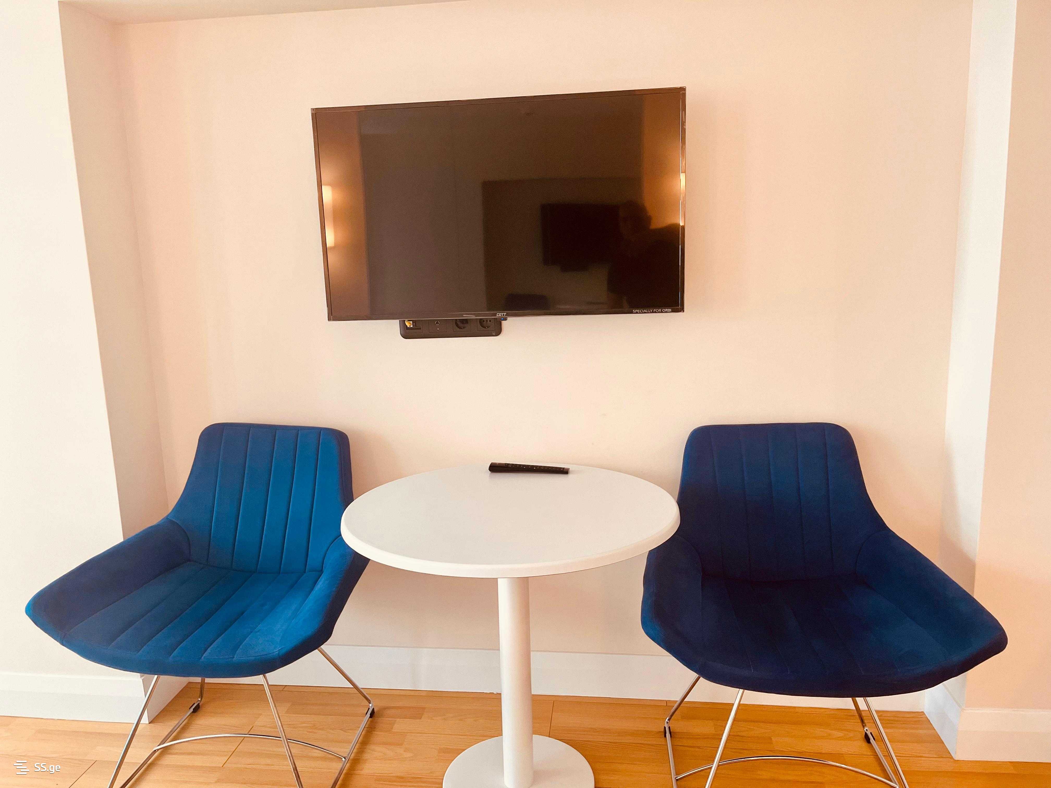 TV, mini fridge, basic kitchen equipment