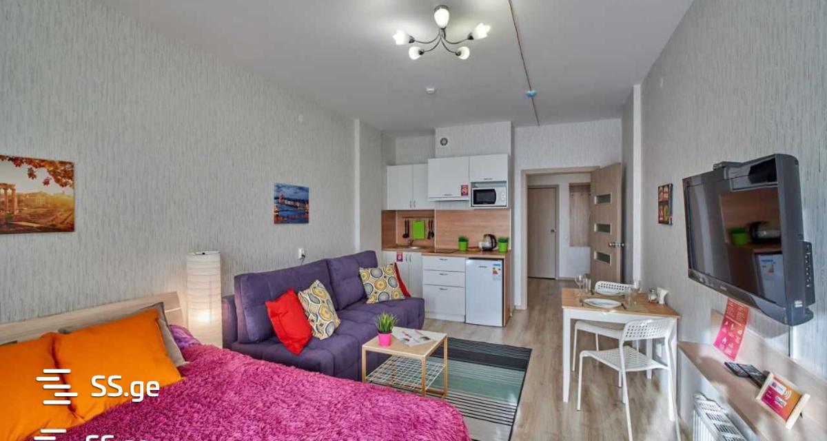 სრულფასოვანი სტუდიო ბინა, ლამაზი თავისი განლაგებით, ისტორიულ უბანში. ბინის შეძენა რემონტის ეტაპზე არის შესანიშნავი შესაძლებლობა დაზოგოთ $ თითო მ². ფასი ახლა მინიმალურია! საინვესტიციო ქონება თბილისში. შეგიძლიათ შეიძინოთ სტუდია, გაქირავდებათ და მიიღებთ პასიურ შემოსავალს. ჩვენ გთავაზობთ მმართველი კომპანიის მომსახურებას, რომლის წყალობითაც შეგიძლიათ მიიღოთ და აკონტროლოთ შემოსავალი ბინის მოვლის გარეშე. მმართველი კომპანია თავის თავზე იღებს კლიენტების მოძიებას და შემოწმებას, აპარტსასტუმროს უსაფრთხოებას, საყოფაცხოვრებო სამუშაოებს და ა.შ. ფინანსური მაჩვენებლები თქვენი პასიური შემოსავალი: მომგებიანობა: 14% წლიურად. შემოსავალი წელიწადში: $6000 საშუალო შემოსავალი თვეში: 500$ სრულად მზად სტუდიო ბინები: შეცვლილია ყველა კომუნიკაცია, ტიხრები, იატაკი და ჭერი; აბაზანა მთლიანად კრამიტით, აღჭურვილია სანტექნიკით და საშხაპეთი;