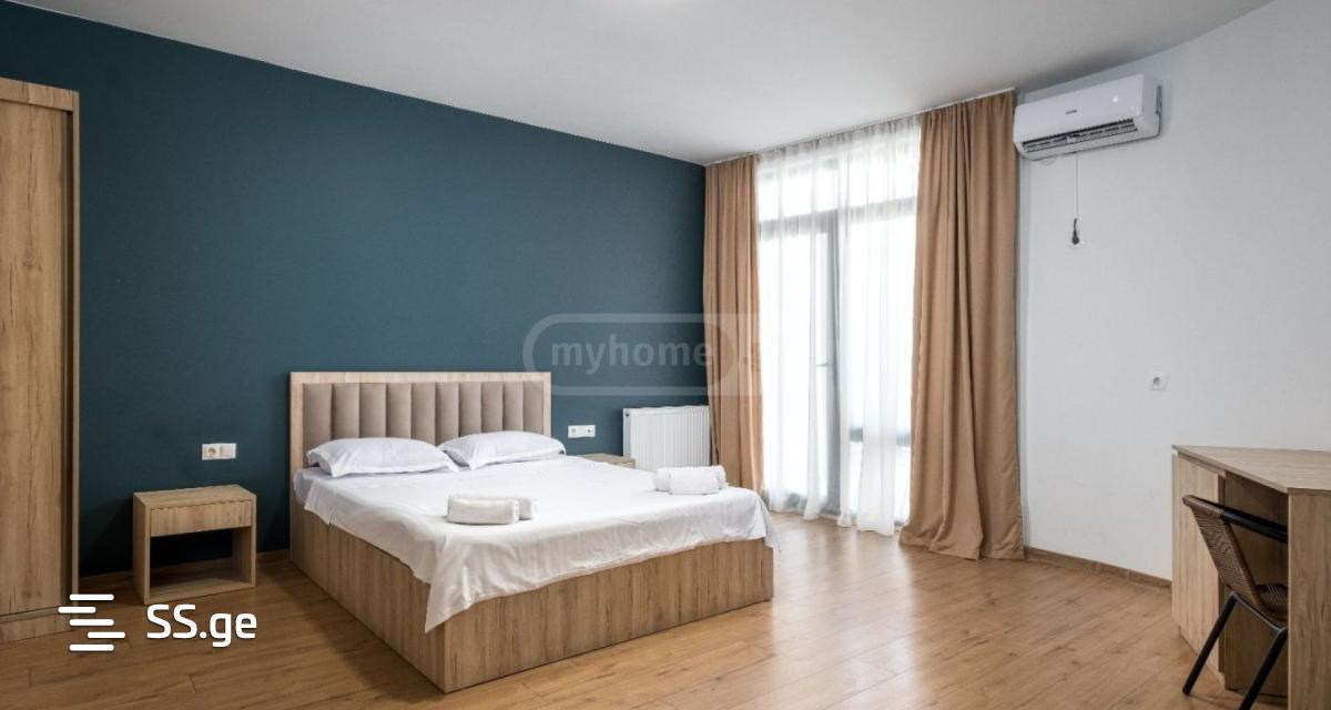 Apartment in a modern 4-storey house in the recreation area of Tbilisi. With a panoramic view of the city. has a modern elevator with UPS system; natural water supply; bathroom in boho-modern style; fire protection system; inner yard and parking; wireless internet; charger for electronic car; By agreement, it is possible to build a kitchen and modify the room.