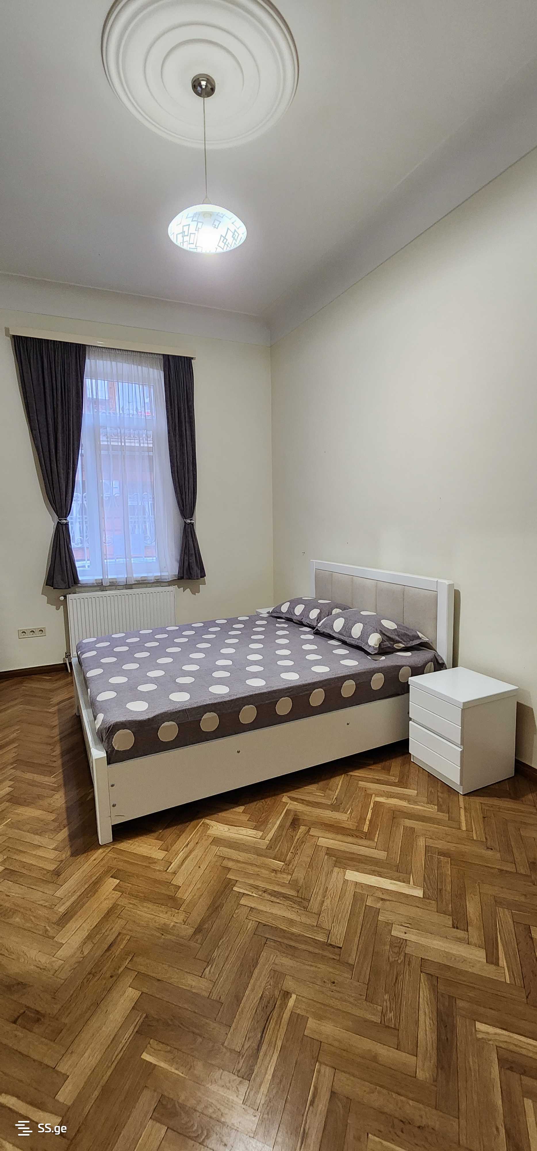 For rent: a two-room, well-furnished, clean apartment with a separate bedroom, located on the high first floor of a two-story building, 5 minutes walk from "Sadguri Square" metro (near Tamar Mepe Avenue and the intersection with Agmashenebeli Avenue). The building has a secured, locked entrance. There is a parking space near the entrance, where parking is trouble-free. The apartment is accessible from two streets, both from Tamar Mepe Avenue and from Lebanidze Street (formerly Borjomi Street), which is very convenient. The apartment has an excellent and convenient location and good conditions. Nearby facilities: pharmacy, school, theater, supermarkets, Dynamo Stadium, Musthaid Park, Todua Clinic, bus stop, "Sadguri Square" metro, German embassy, and more. P.S. Long-term rental is possible. (Price is negotiable)
