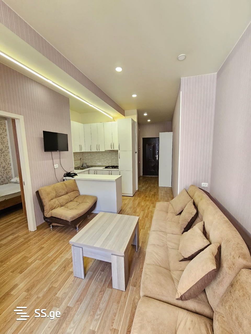 A well-equipped apartment is available for daily rent, furnished with necessary items and hygiene supplies.