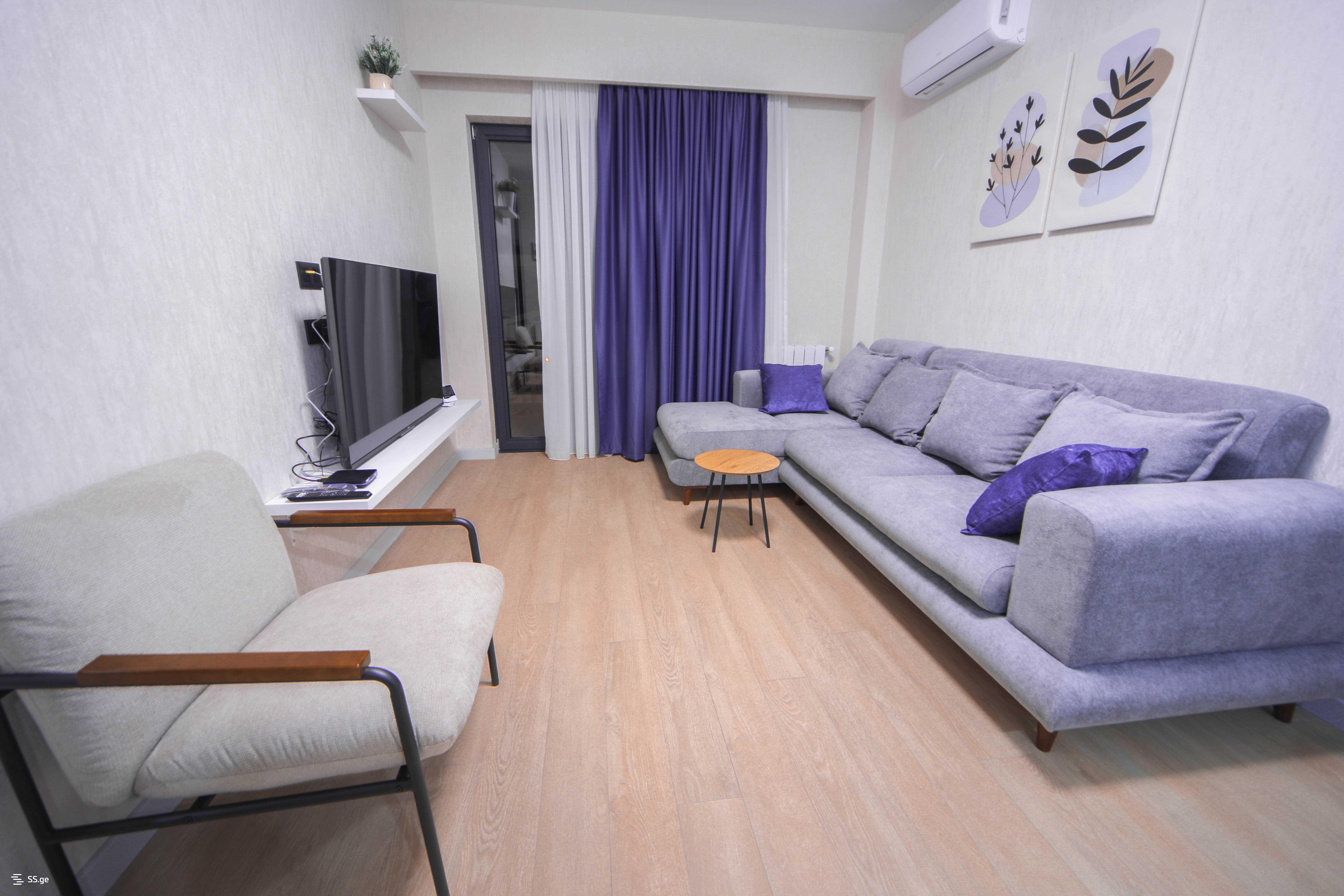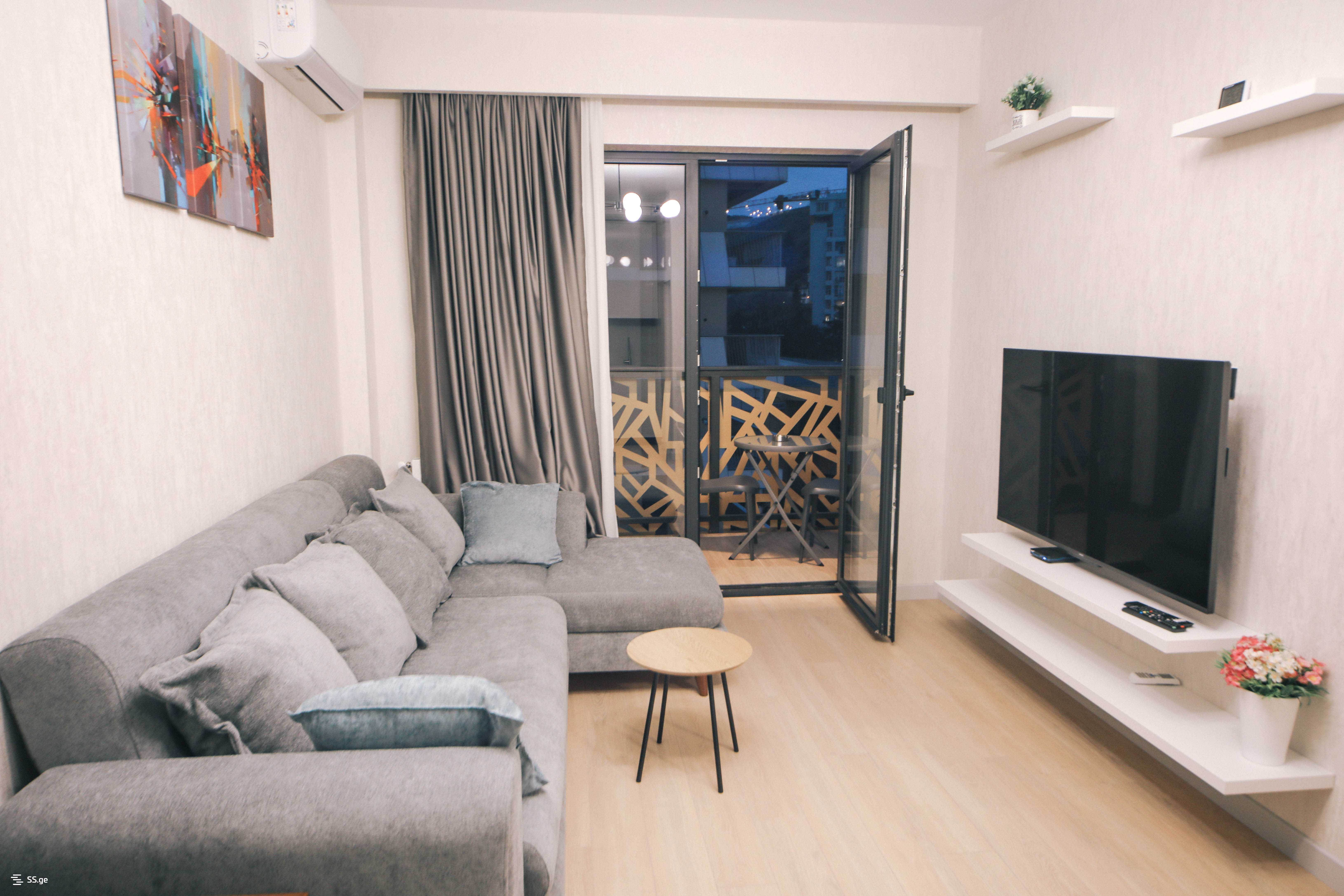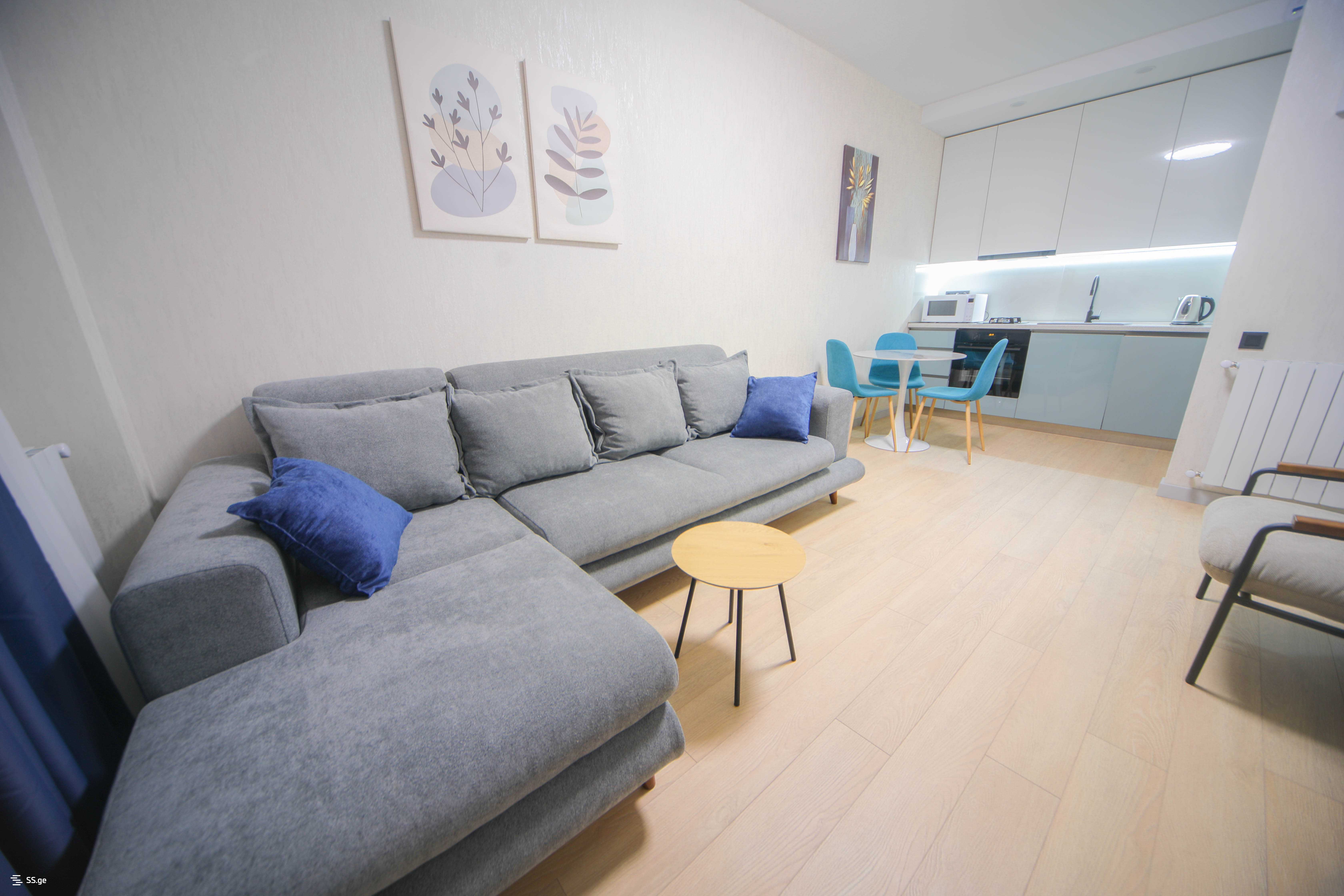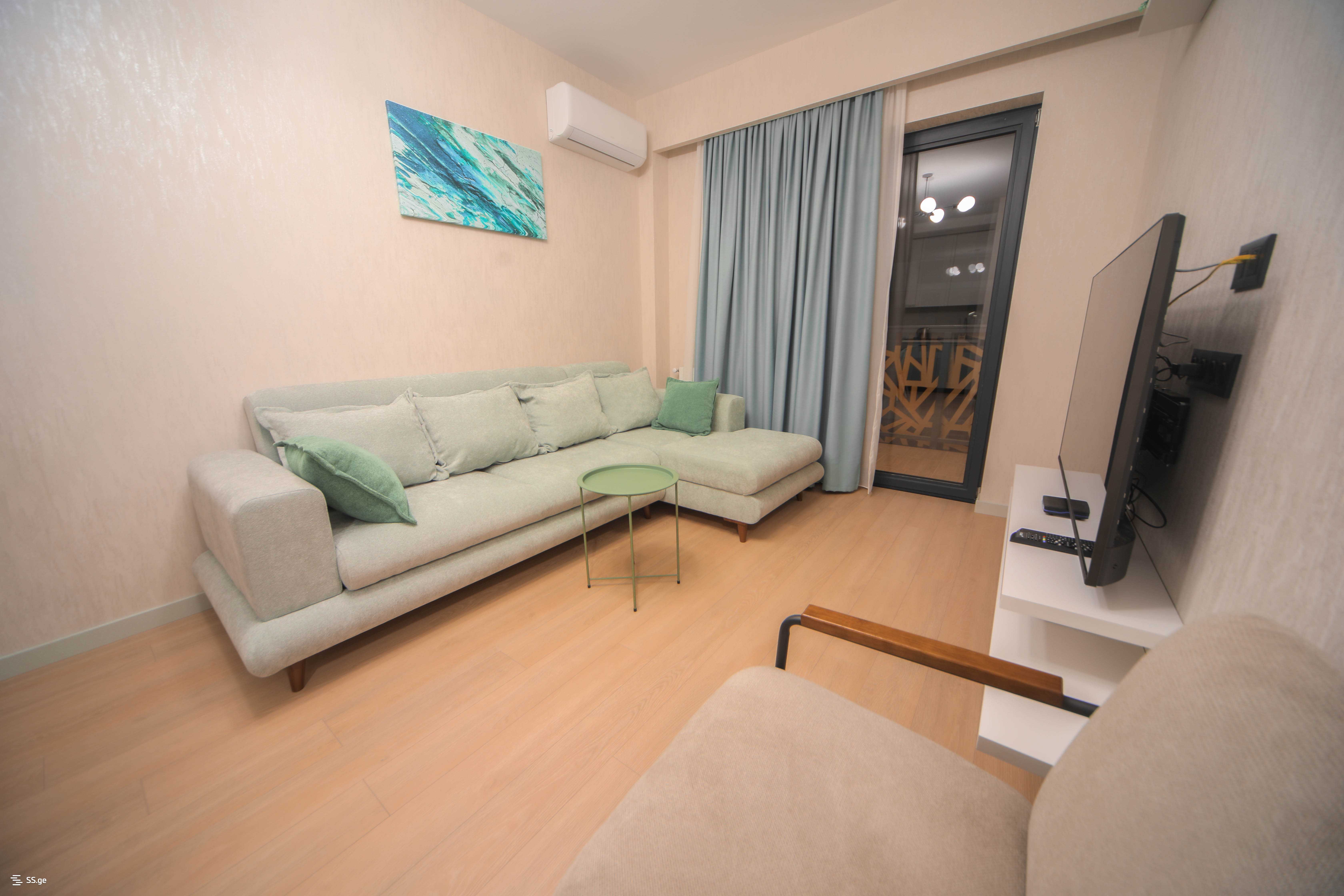 At the beginning of Marshal Gelovani, across from Agrohub, in the new M3 neighborhood. A 2-room studio apartment of a 5-star hotel type. With a parking space located on the -1 floor for guests. You will find the highest quality comfort in the apartment, which gives it a luxury category, which you will see for yourself.