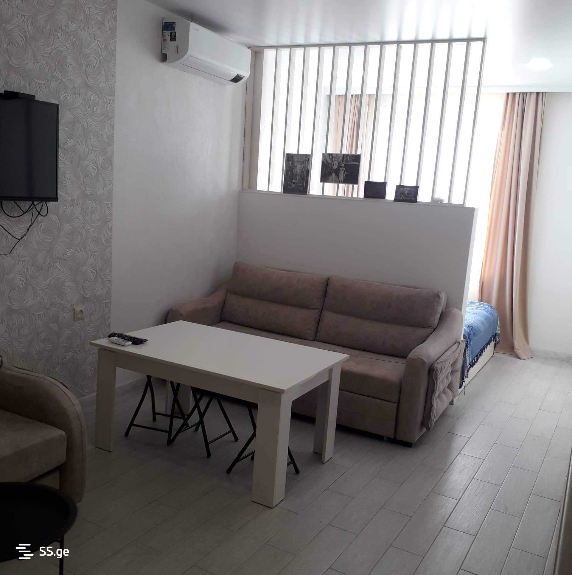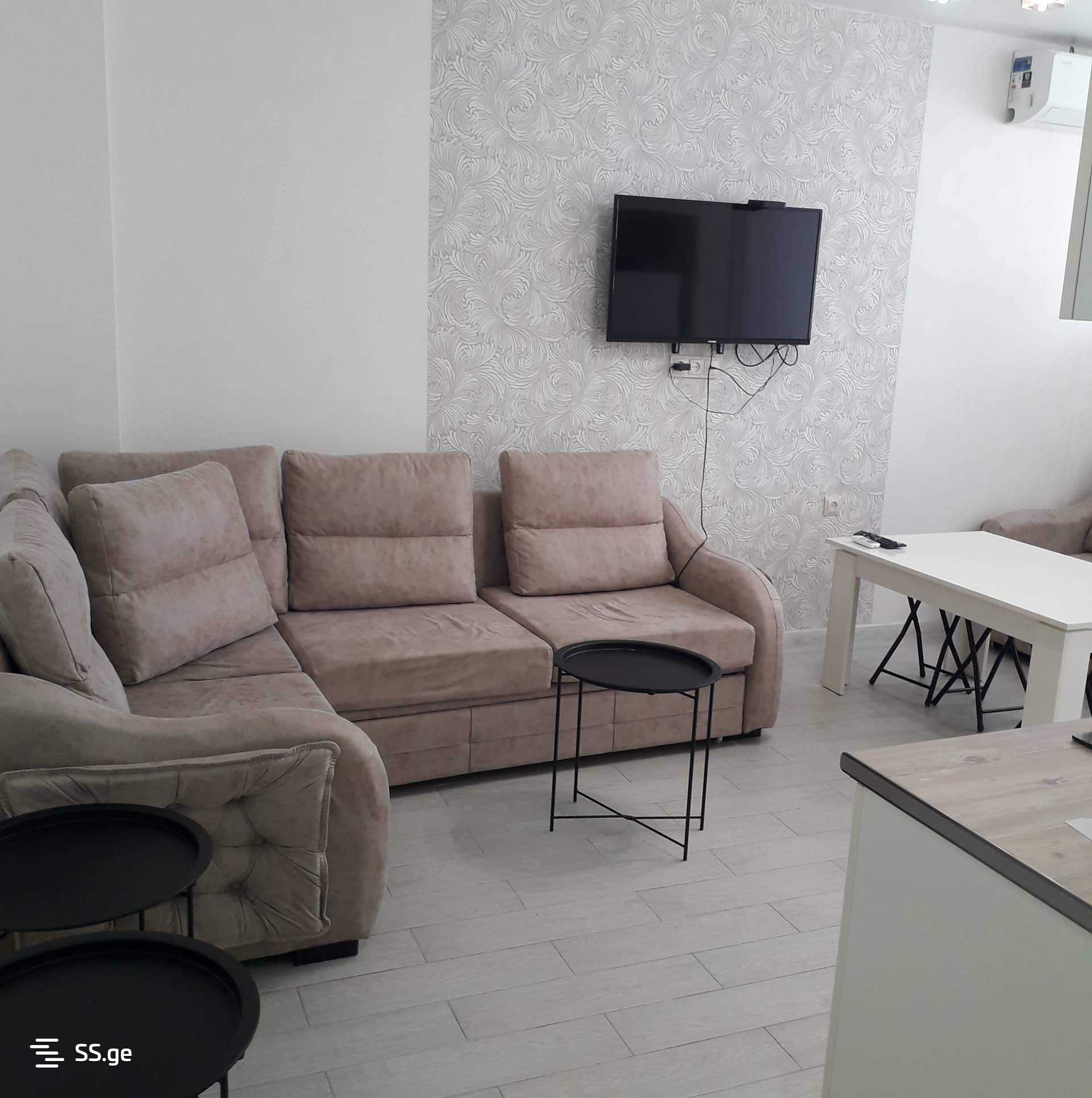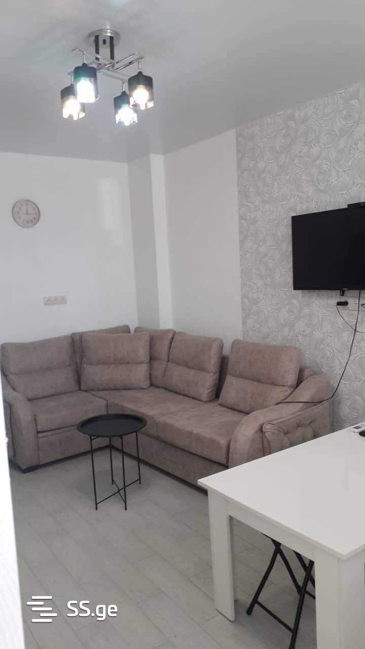 For rent for at least 1 year. Near Grandmall, adjacent to Voksi. It actually has 2 bedrooms. There is 1 independent bedroom, while the other is separated by a half-built wall and a special wooden screen in the studio. The apartment is equipped with air conditioning, there is a television, internet is connected, there is a washing machine in the wet area, and a hygienic shower is also installed.